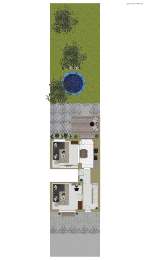 Bereits beim Betreten des Hauses empfängt Sie ein einladender Eingangsbereich, der in den hellen und freundlich gestalteten Wohnbereich führt. Große Fenster sorgen hier für viel Tageslicht und eine angenehme Wohnatmosphäre. Der Küchenbereich geht harmonisch in den Essbereich über, welcher in Verbindung zur Terrasse steht. Dieses Zusammenspiel schafft ein kommunikatives Wohnkonzept, das den Mittelpunkt des täglichen Lebens bildet.