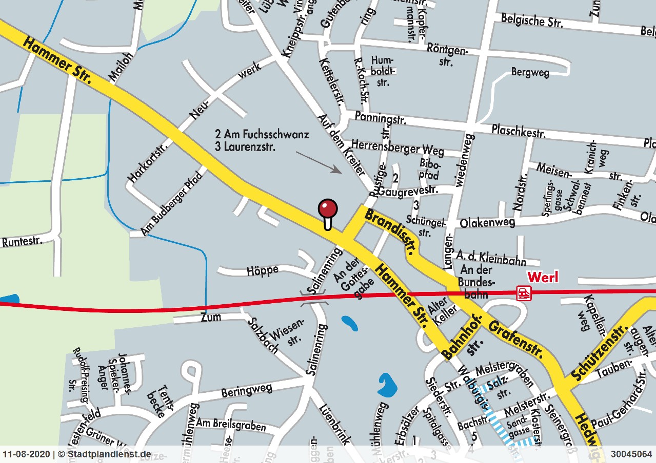 Das Objekt liegt in zentrumsnaher Lage von Werl. In unmittelbarer Nähe befinden sich der Kurpark, das Schulzentrum, Ärzte und Einkaufsmöglichkeiten. Die Werler Fußgängerzone und der Bahnhof liegen ca. 800 m entfernt. Bis zur Anschlussstelle zur A445 sind es lediglich ca. 1,7 km.