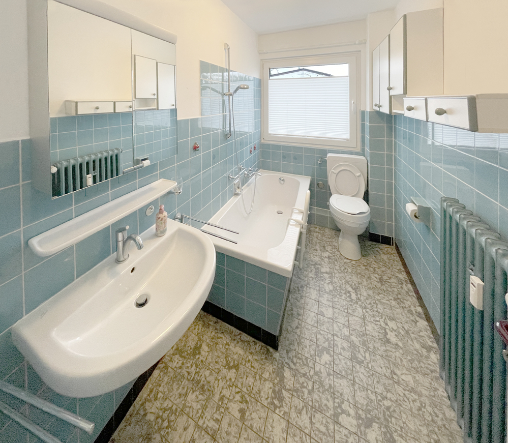 Die Wohnung hat einen funktionalen Schnitt und die ca. 96 m² Wohnfläche teilen sich wie folgt auf: 2 Schlafzimmer, die beide nach hinten zum Garten liegen und somit viel Ruhe und Privatsphäre bieten. Das Retro-Gäste-WC und Wannenbadezimmer, beide mit einem Fenster, und die moderne Küche liegen zur Strassenseite. Das Wohnzimmer mit viel Licht und einer grossen Fensterfront bietet den Austritt zum Süd-West-Balkon und ist für die sonnigen Tage mit einer Markise ausgestattet. Hier können Sie den Blick und den möglichen Zugang in den Garten so richtig geniessen und die Seele baumeln lassen. Ein grosser, geöffneter Durchgang im Wohnzimmer trennt den Essbereich ein wenig ab, der wiederum mit der Küche verbunden ist. Hier besteht die Möglichkeit den Essbereich zu schliessen um ein weiteres Zimmer zu erhalten. Im Flur tritt man sich durch seine optimale Breite nicht auf die Füsse und an der Wohnungseingangstür befindet sich ein praktischer Einbauschrank.