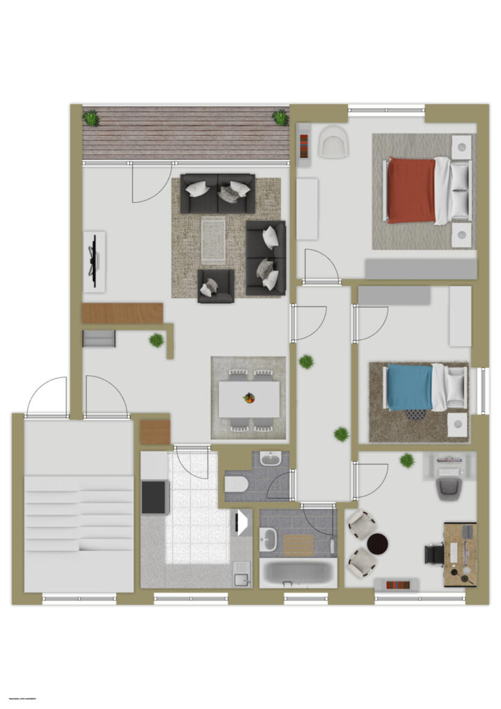 – Wohn- und Essbereich: Großzügiger, offener Bereich, der sich hervorragend für gemeinsames