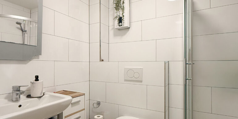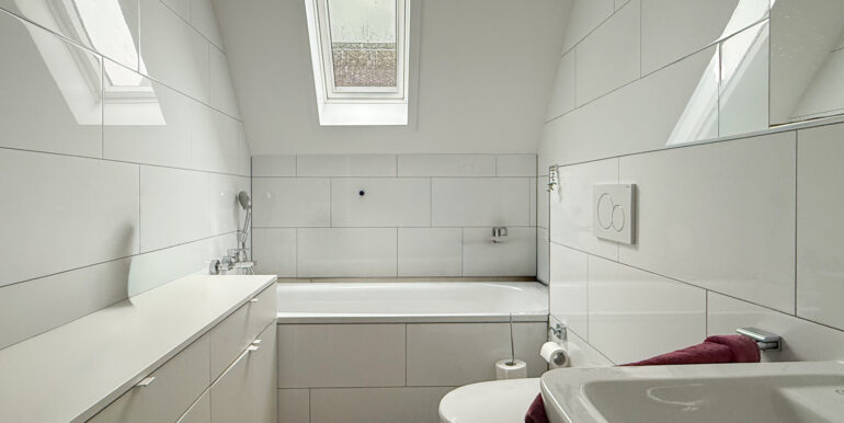 Das moderne Badezimmer ist mit Dusche, Waschbecken und WC ausgestattet. Ein zweites Bad verfügt über Tageslichtfenster, eine Badewanne, WC und Waschbecken.