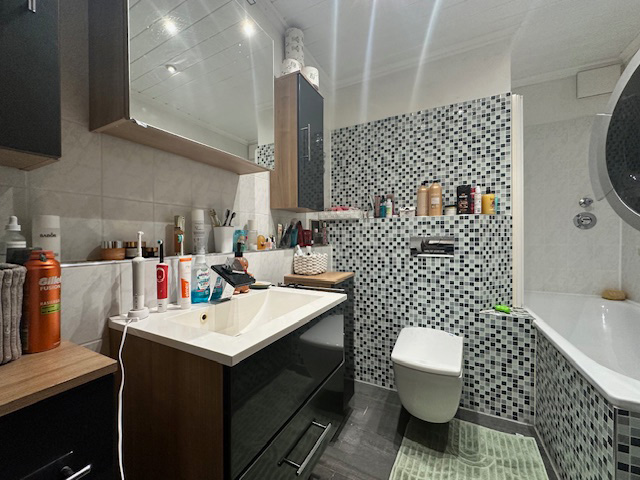 Duschbad und separates Wannenbad mit Waschmaschinenanschluss
