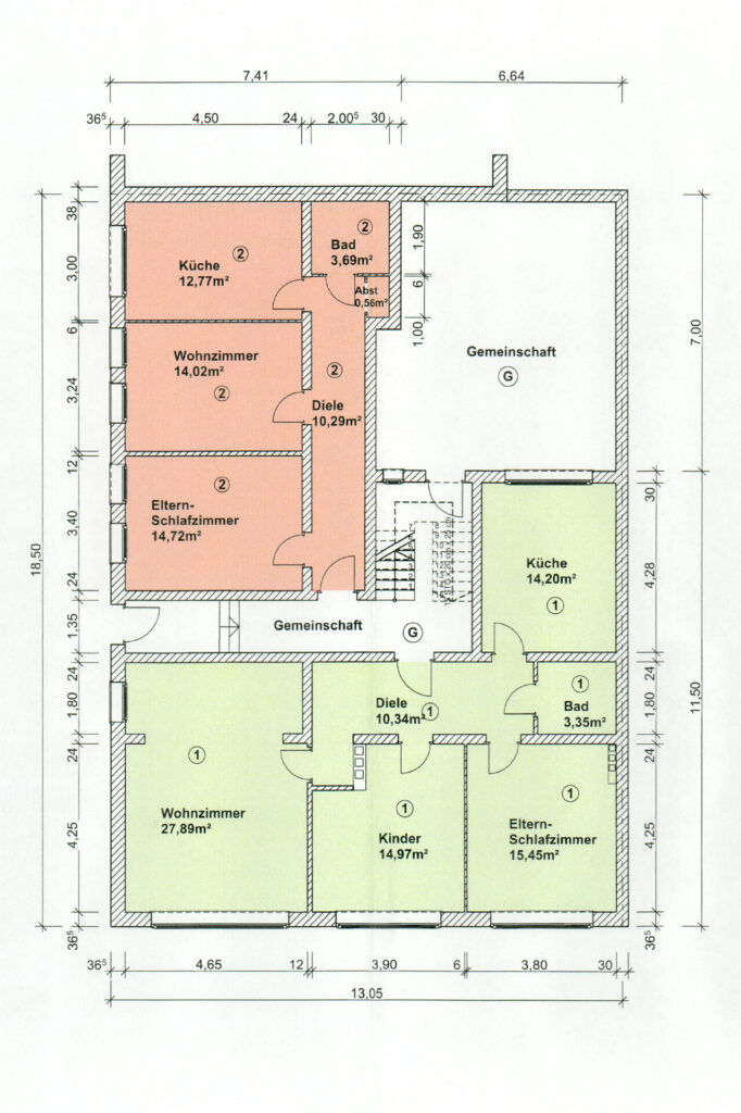 WE 1 – Erdgeschoss links: 86,20 m², 3 Zimmer