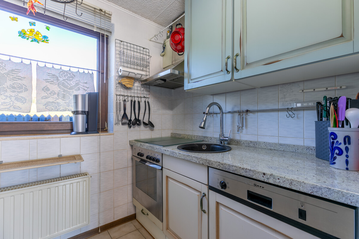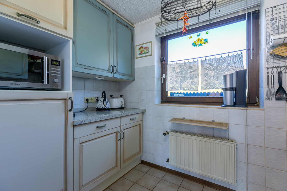Zurück im Wohnraum gelangt man durch einen offenen Durchgang in die Küche. Die vorhandene Einbauküche ist klein aber fein und bereits im Kaufpreis enthalten. Ebenfalls vom Wohnraum aus zu erreichen sind 2 weitere, separate Räume. Ob sie als Schlafzimmer oder Büro genutzt werden, hier hat man freie Auswahl. Ein gepflegtes Duschbad darf natürlich nicht fehlen und vervollständigt die Wohnfläche dieser Immobilie.