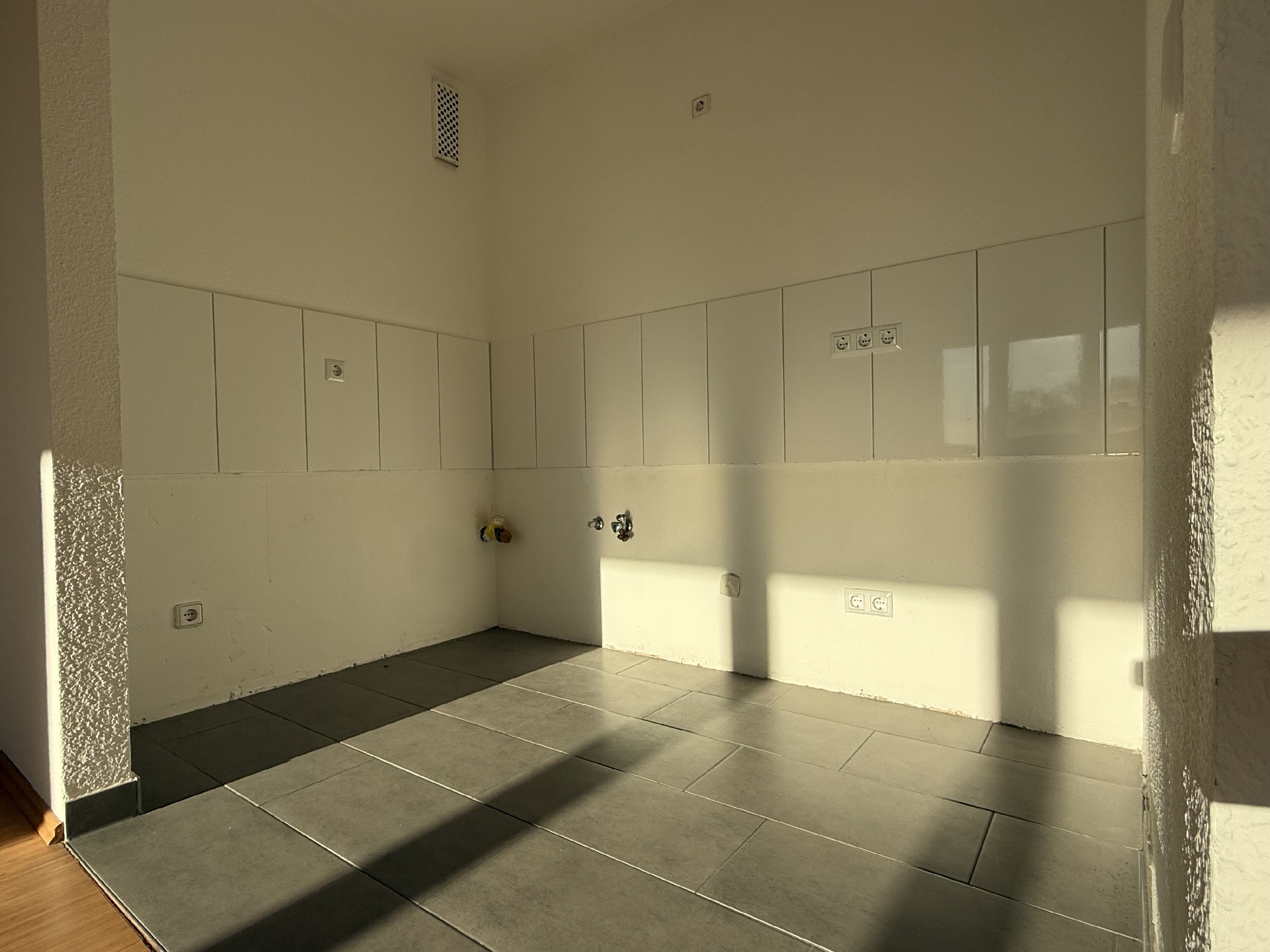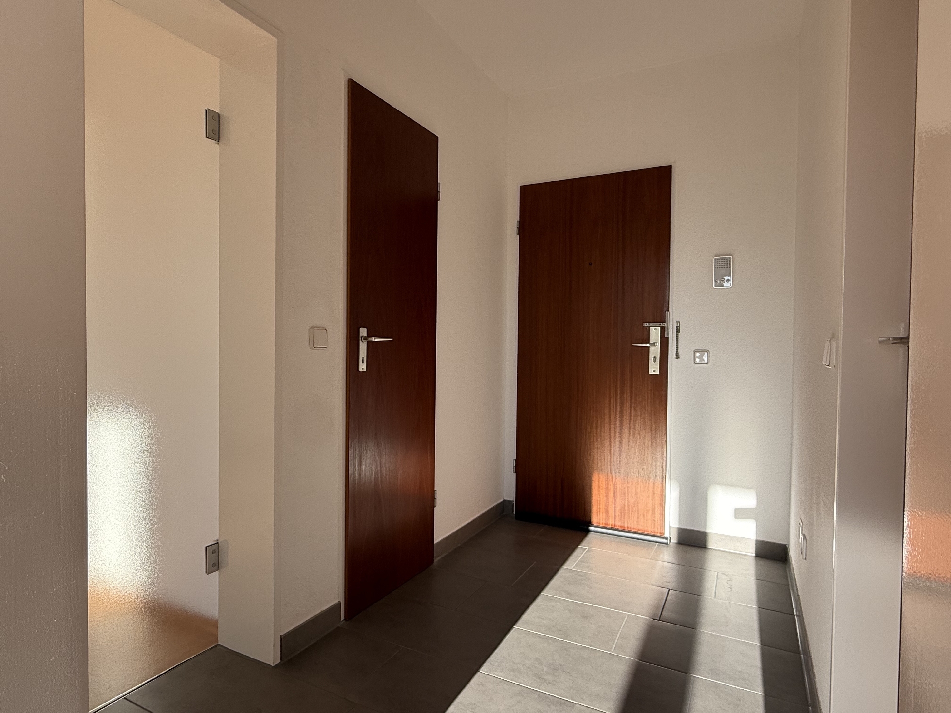 Über einen modernen Flur, welcher Platz für eine kleine Garderobe bietet, gelangen Sie in alle Räume. Zur Linken befindet sich das um 2013 sanierte, innenliegende Wannenbad. Vor Kopf erreichen Sie das helle Schlafzimmer, mit direktem Zugang zur süd-westlich ausgerichteten Loggia. Zur Rechten liegen ein praktischer Abstellraum sowie das Wohnzimmer mit offener Küche. Selbstverständlich bietet auch das Wohnzimmer einen direkten Zugang zur Loggia.