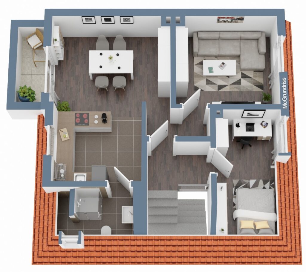 - Bodenbelag: Fliesen, Laminat