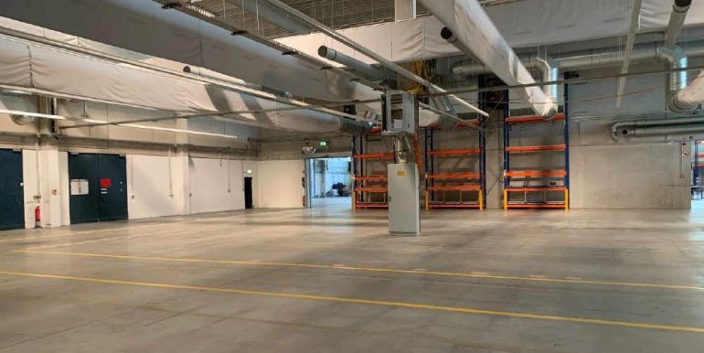 Andienung über 2 Rampentore, 1 eben-erdiges Tor, Höhe ca. 6m, beheizt, Brandschutztore, Betonfußboden, Licht-kuppeln.