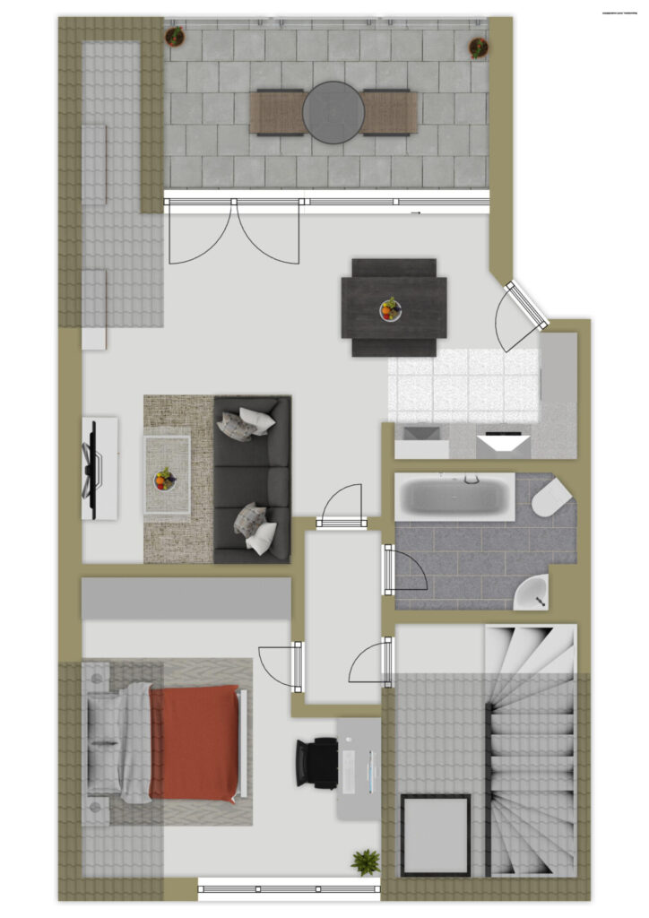 Auf ca. 53 m² entfaltet sich ein durchdachtes und lichtdurchflutetes Wohnkonzept. Das Schlafzimmer ist ein Rückzugsort voller Gemütlichkeit, ideal zum Entspannen und Abschalten. Das innenliegende Badezimmer mit Badewanne lädt zu wohltuenden Wohlfühlmomenten ein und macht den Alltag zu einem kleinen Luxus.