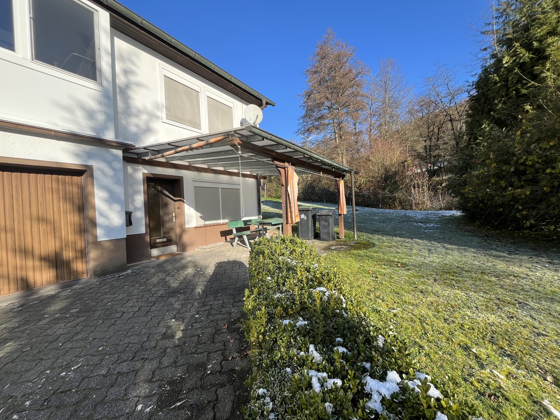 Die Wohnfläche befindet sich komplett im Erdgeschoss (Souterrain) mit direktem Gartenzugang und einem Wintergarten mit Blick ins Grüne. Auf dem Grundstück stehen ein Carport, ein Gartenhaus sowie zwei von der Straße erreichbare Garagenstellplätze im Kellergeschoss zur Verfügung.