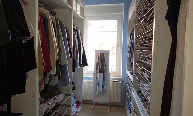 Im 1.OG überzeugt besonders die durchdachte Raumgestaltung: Das Schlafzimmer, ein Ankleidezimmer sowie das Badezimmer sind direkt miteinander verbunden und schaffen eine komfortable Wohnsuite. Zusätzlich gibt es ein Gäste-WC. Es stehen 3 weitere Räume zur Verfügung, ein Raum wird als Büro genutzt. Außer Nasszellen, komplett Parkettböden.