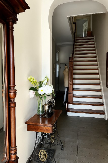 Das rund 219 m² große Grundstück rundet das Gesamtbild mit einem liebevoll angelegten Garten ab, der als Rückzugsort dient. Im Inneren besticht das Haus durch seine Details: original erhaltene Holzdielenböden, die Wärme und Charakter ausstrahlen, teilweise kunstvoll verzierte Stuckdecken, die jedem Raum eine besondere Note verleihen, und eine klare, harmonische Raumgestaltung, die den Blick für das Wesentliche freilässt.