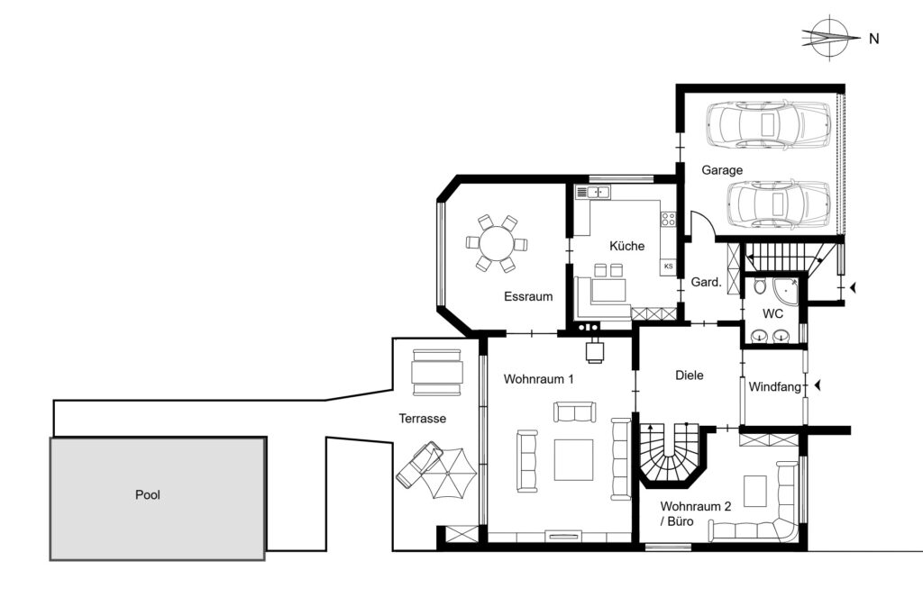 – Doppelgarage mit direktem Zugang zum Haus
