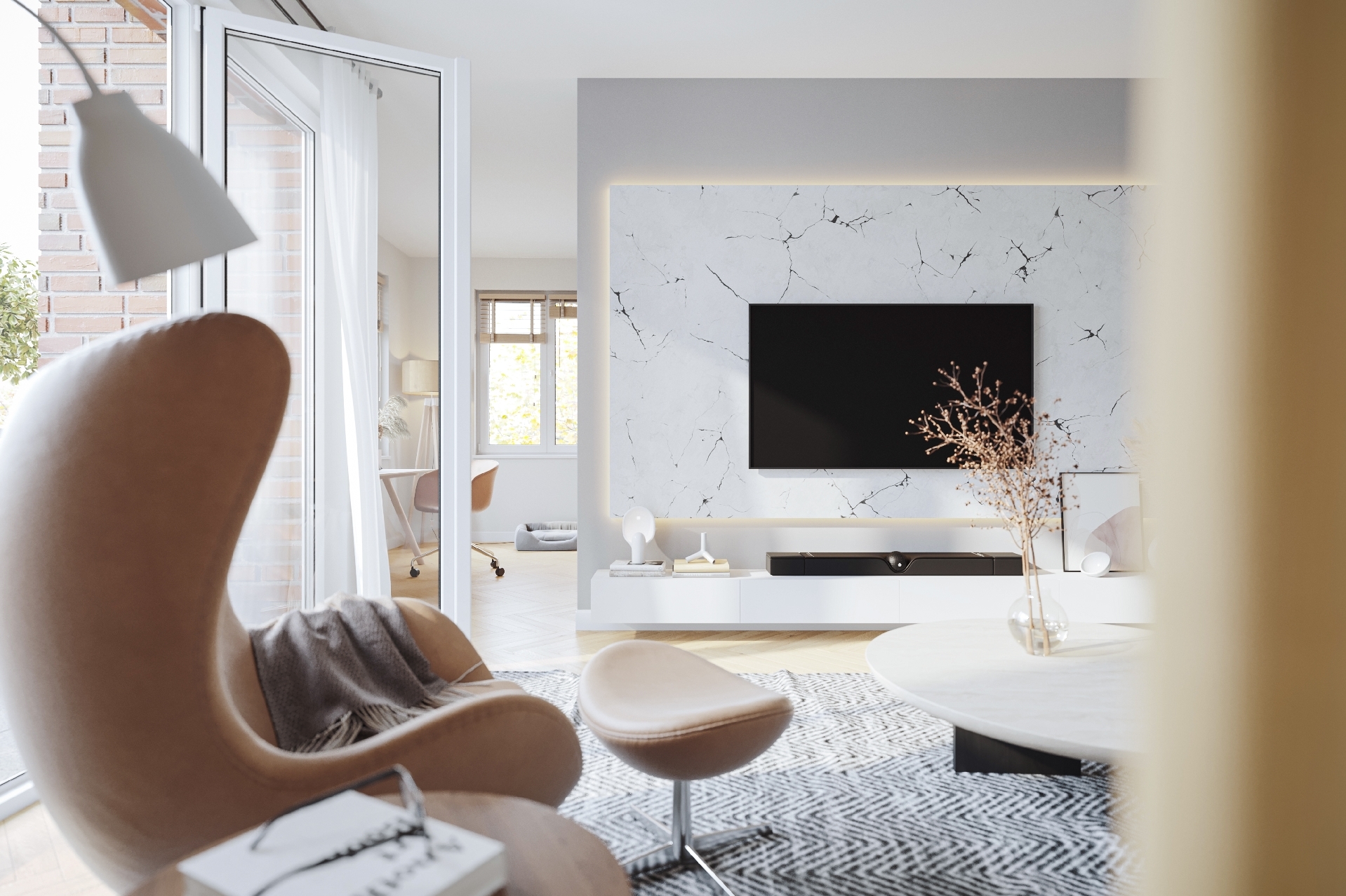Die Visulalisierunger der Wohnung sind beispielhaft.