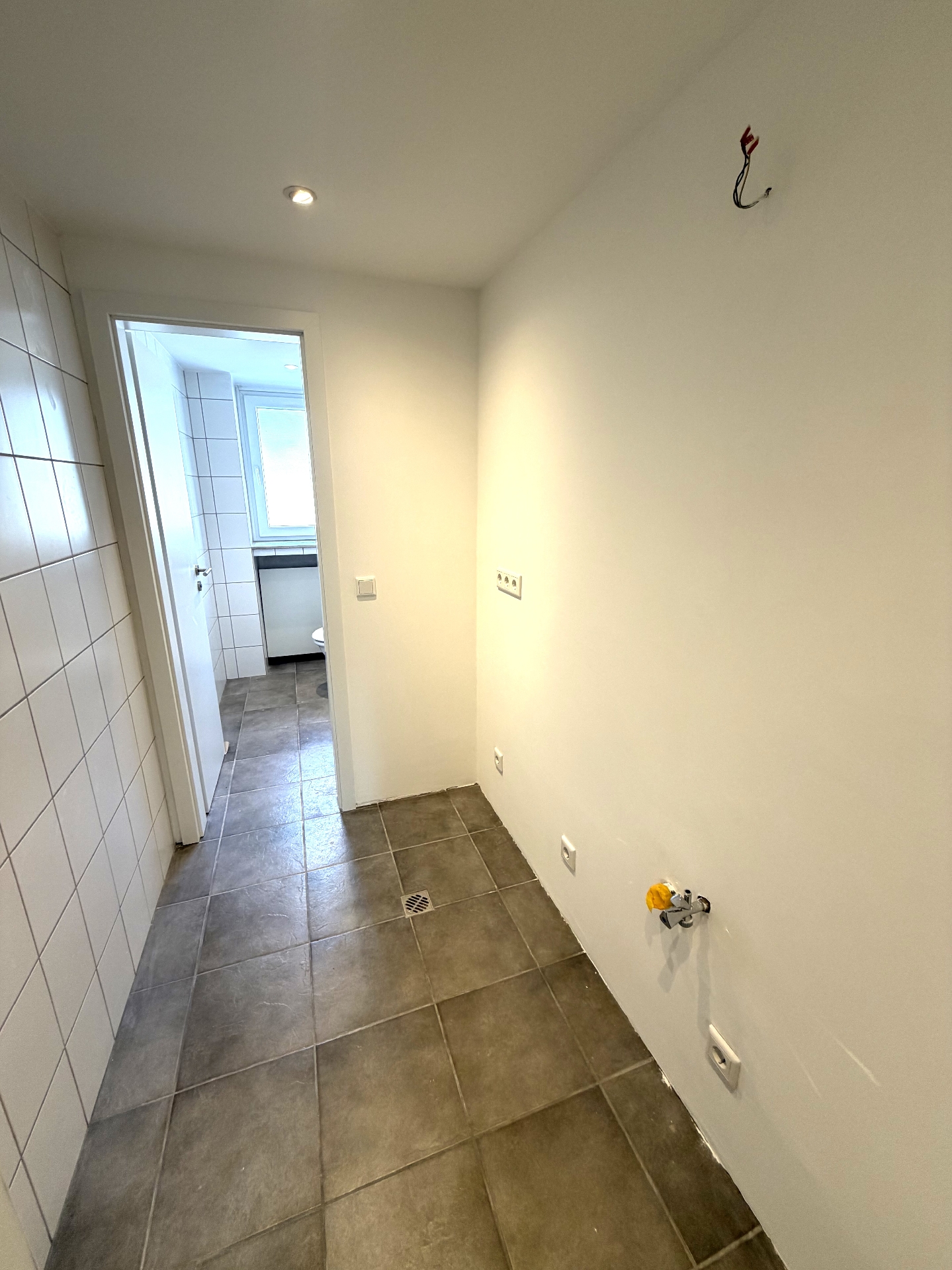 Decken und Wände sind frisch weiß gestrichen. Der Boden ist mit einem neuen Vinylboden in Holzoptik ausgelegt worden. Das WC befindet sich in einem gepflegten Zustand, die Sanitärkeramik ist zeitgemäß. Die Fenster mit Kunststoffrahmen sind isolierverglast. Die Warmwasserbereitung erfolgt über einen Durchlauferhitzer, geheizt wird über Fernwärme.