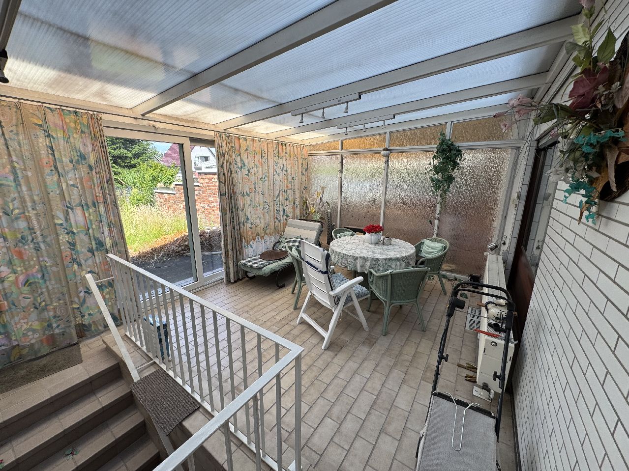 Bauweise: Herkömmlich massiv, beidseitig angebaut, Satteldach, 2 Vollgeschosse, ausgebautes Dachgeschoss, voll unterkellert, Kelleraußentreppe, Wintergarten.