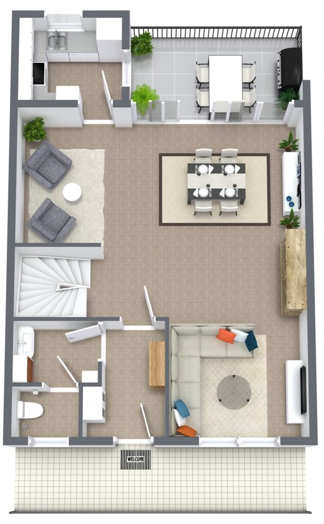 Über eine innenliegende Treppe im Wohnbereich gelangen Sie ins Dachgeschoss.