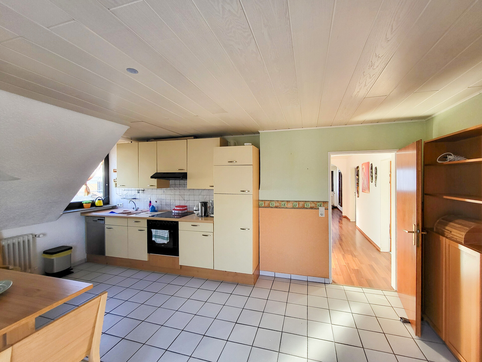 Beide Wohnungen sind mit Einbauküchen ausgestattet. Böden und Bäder wurden seit 2015 erneuert. Keller und Dachgeschoss bieten weiteres Ausbaupotenzial.