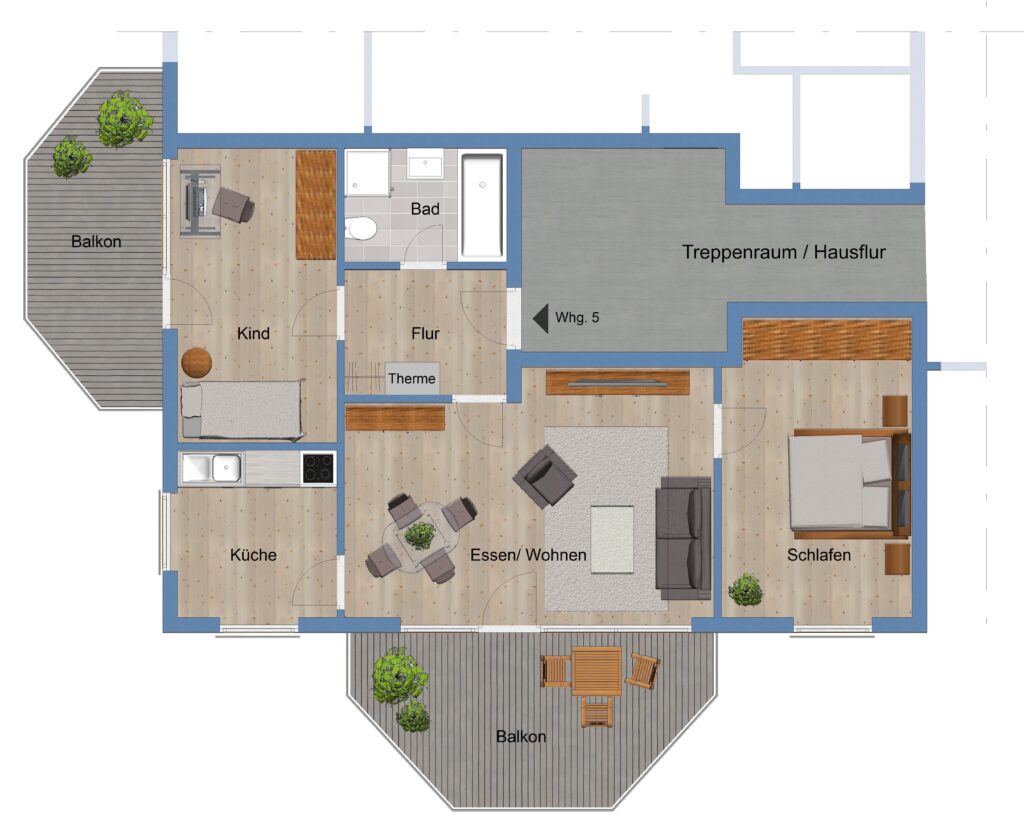 Ein Balkon nach Süden, ein Balkon nach Westen.