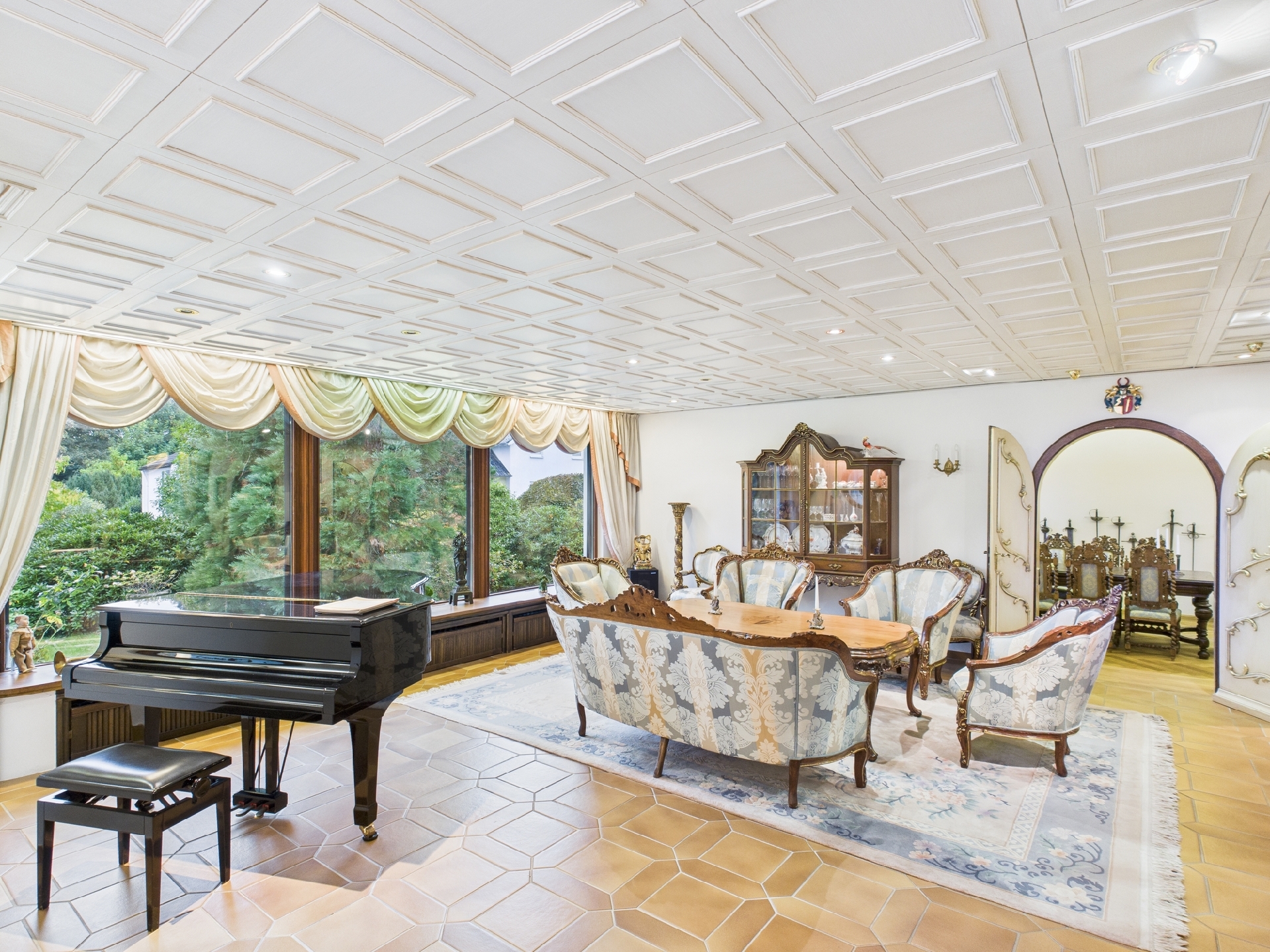 Im Erdgeschoss erwartet Sie ein großzügiger Wohn-/Essbereich, der durch seine offene Gestaltung besticht. Angrenzend befindet sich eine kleine Bibliothek, die Raum für Ruhe und Inspiration bietet. Der sonnige Wintergarten erweitert den Wohnbereich harmonisch und eröffnet einen wunderbaren Blick in den Garten. Die kleine Einbauküche und das Gäste-WC ergänzen das Raumangebot. Ein großes Nebenzimmer eröffnet zusätzliche Möglichkeiten: So könnte der Raum z.B. zu einem komfortablen Eltern-Schlafzimmer mit Ankleidebereich und Bad en Suite umgebaut werden.