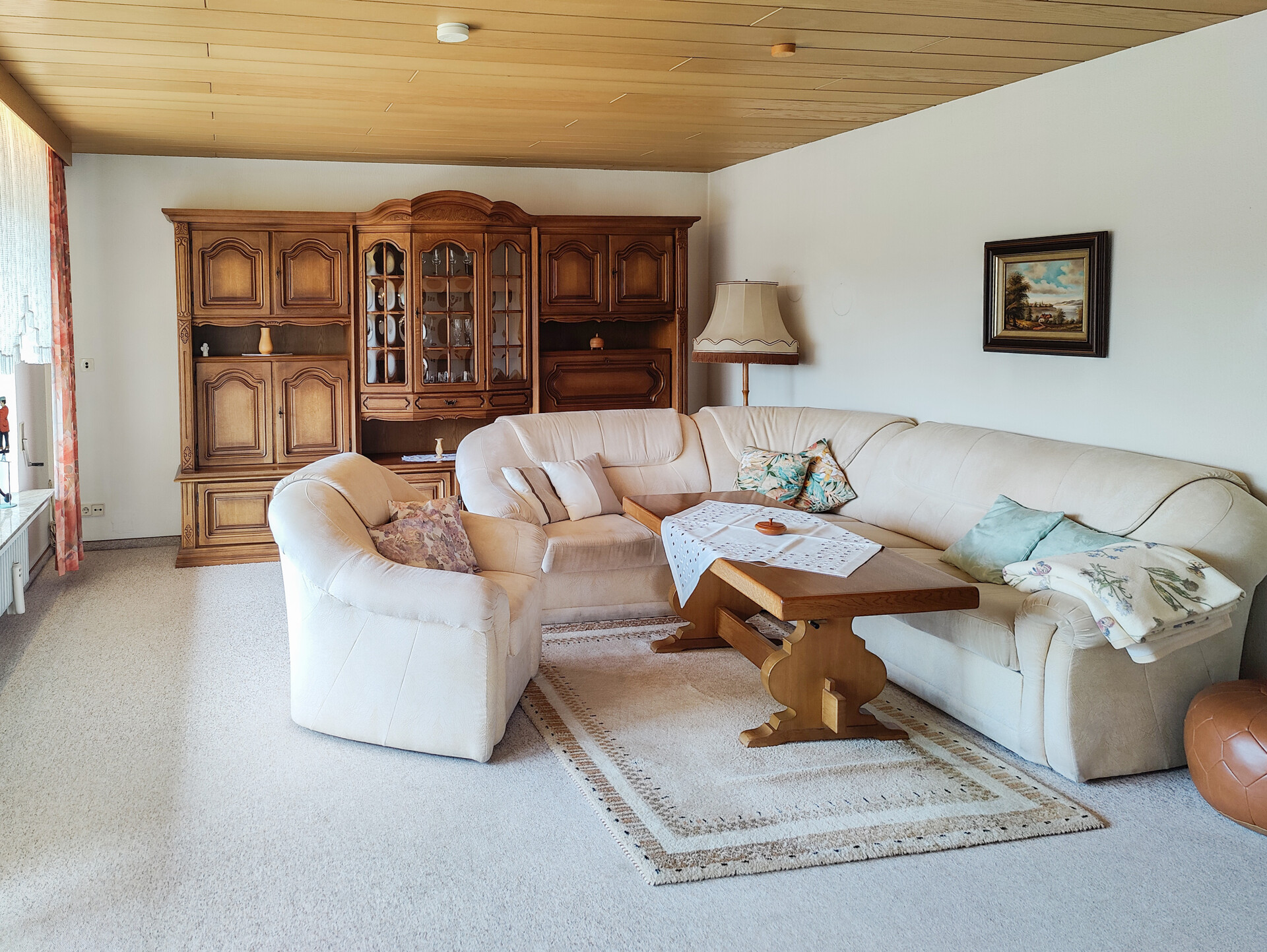 Im Inneren präsentiert sich die Immobilie in einem gepflegten, jedoch renovierungsbedürftigen Zustand und bietet damit viel Potenzial für eine individuelle Neugestaltung.