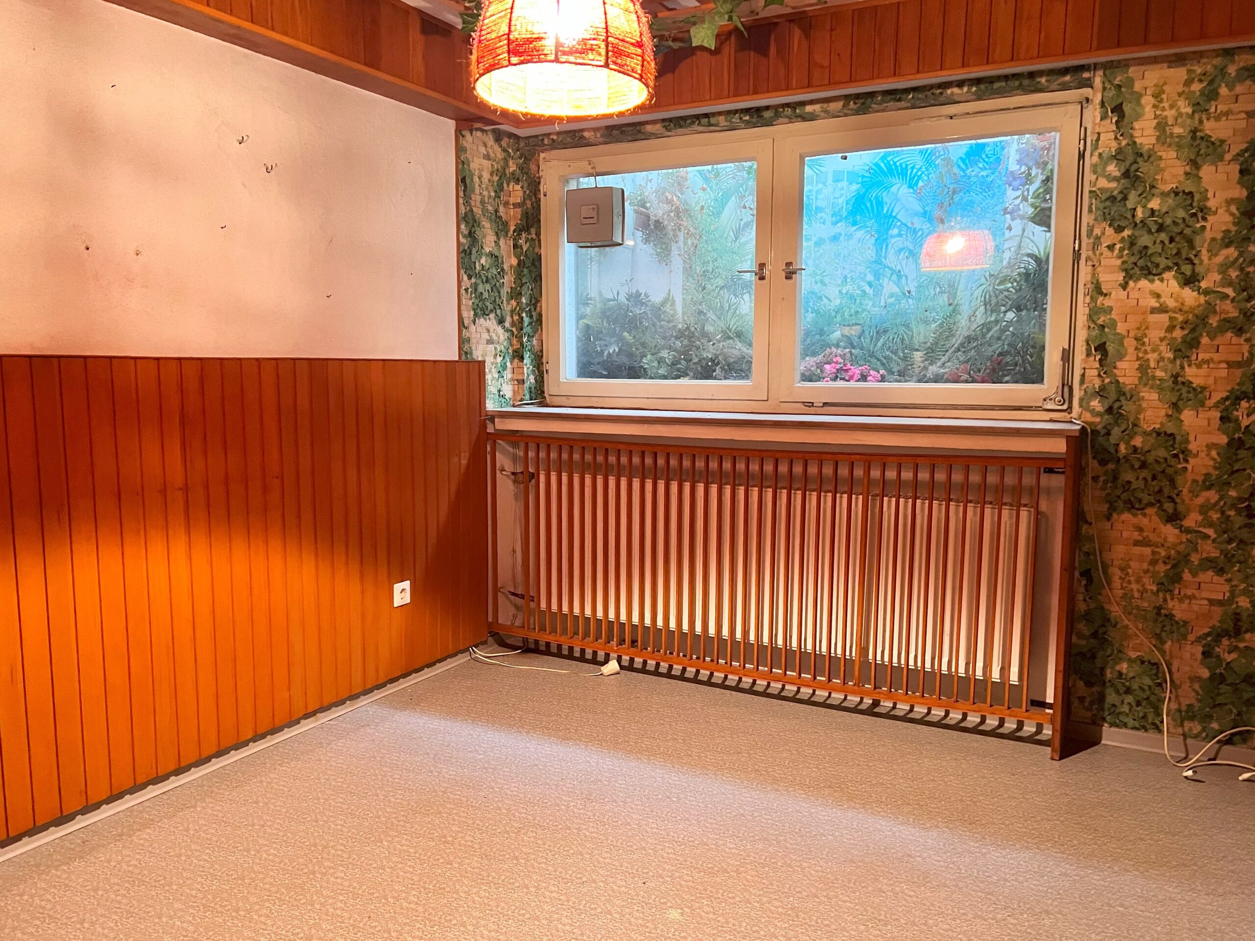 Das voll unterkellerte Einfamilienhaus wurde ca. 1971 in massiver Bauweise als Doppelhaushälfte errichtet. Im Erdgeschoss befinden sich die Küche, der große Wohn-/Essbereich sowie die Diele und das Gäste-WC. Das Obergeschoss hat derzeit 3 Zimmer, ein Bad sowie einen Balkon. Das wohnfähig ausgebaute Dachgeschoss überzeugt durch ein großes Studio / Zimmer sowie ein Bad.