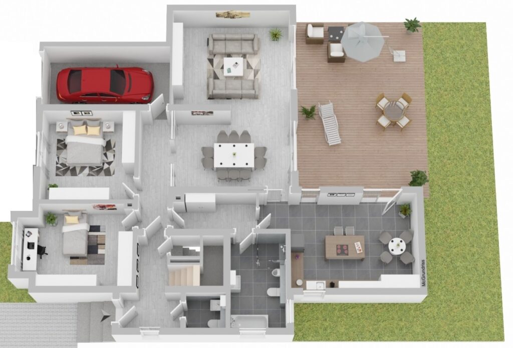 Die großzügige Terrasse bietet viel Platz für eine gemütliche Sitzgruppe und die Möglichkeit zur Teilmitbenutzung des Gartens.