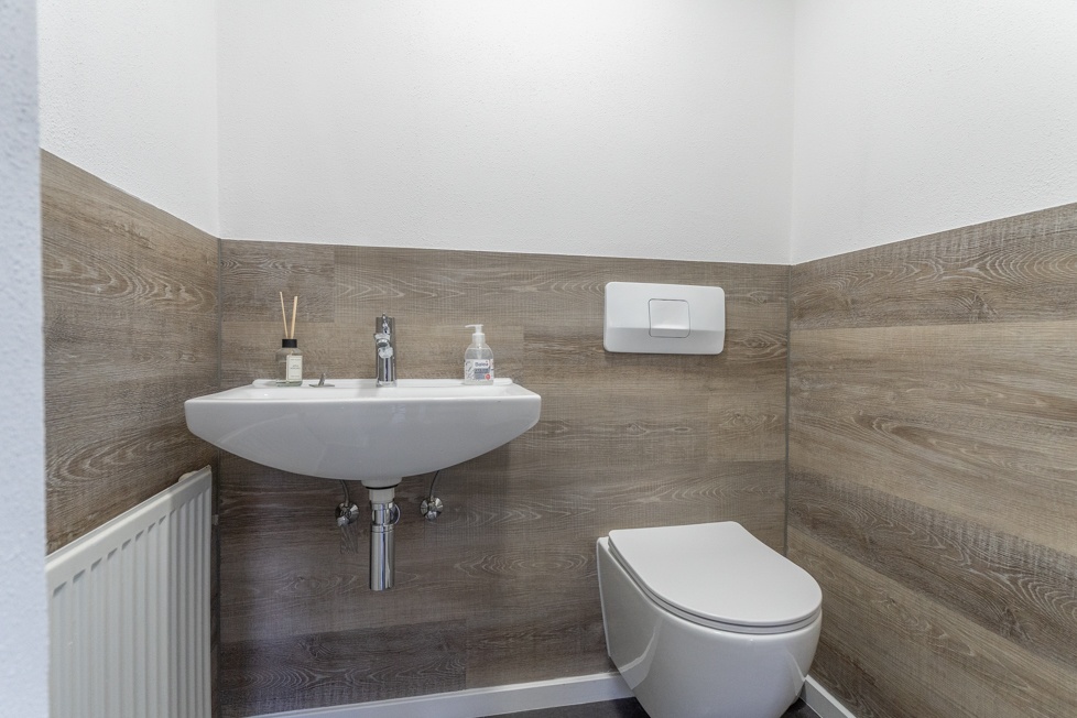 Gäste-WC: Separates Gäste-WC im Eingangsbereich mit Vinylboden