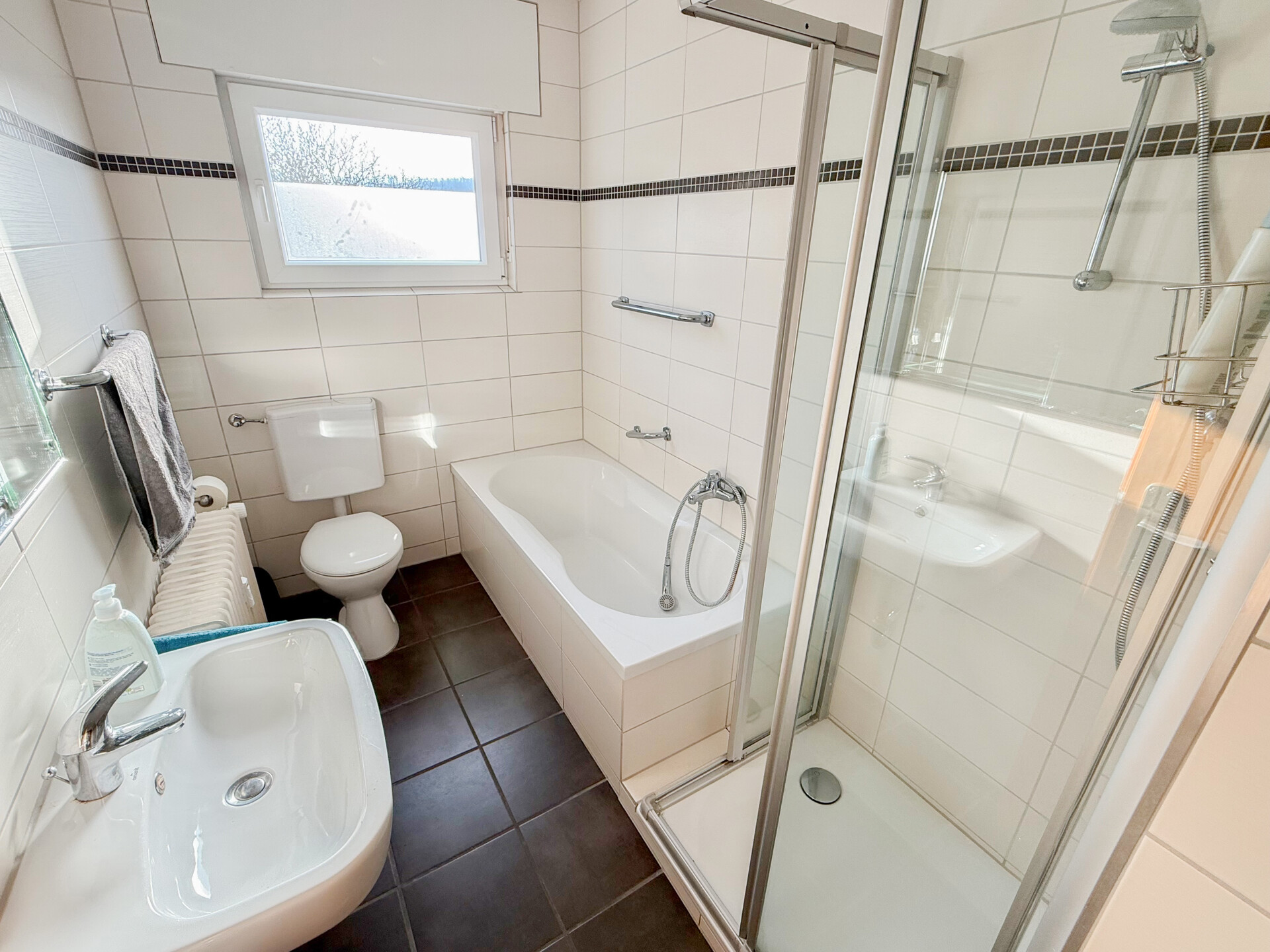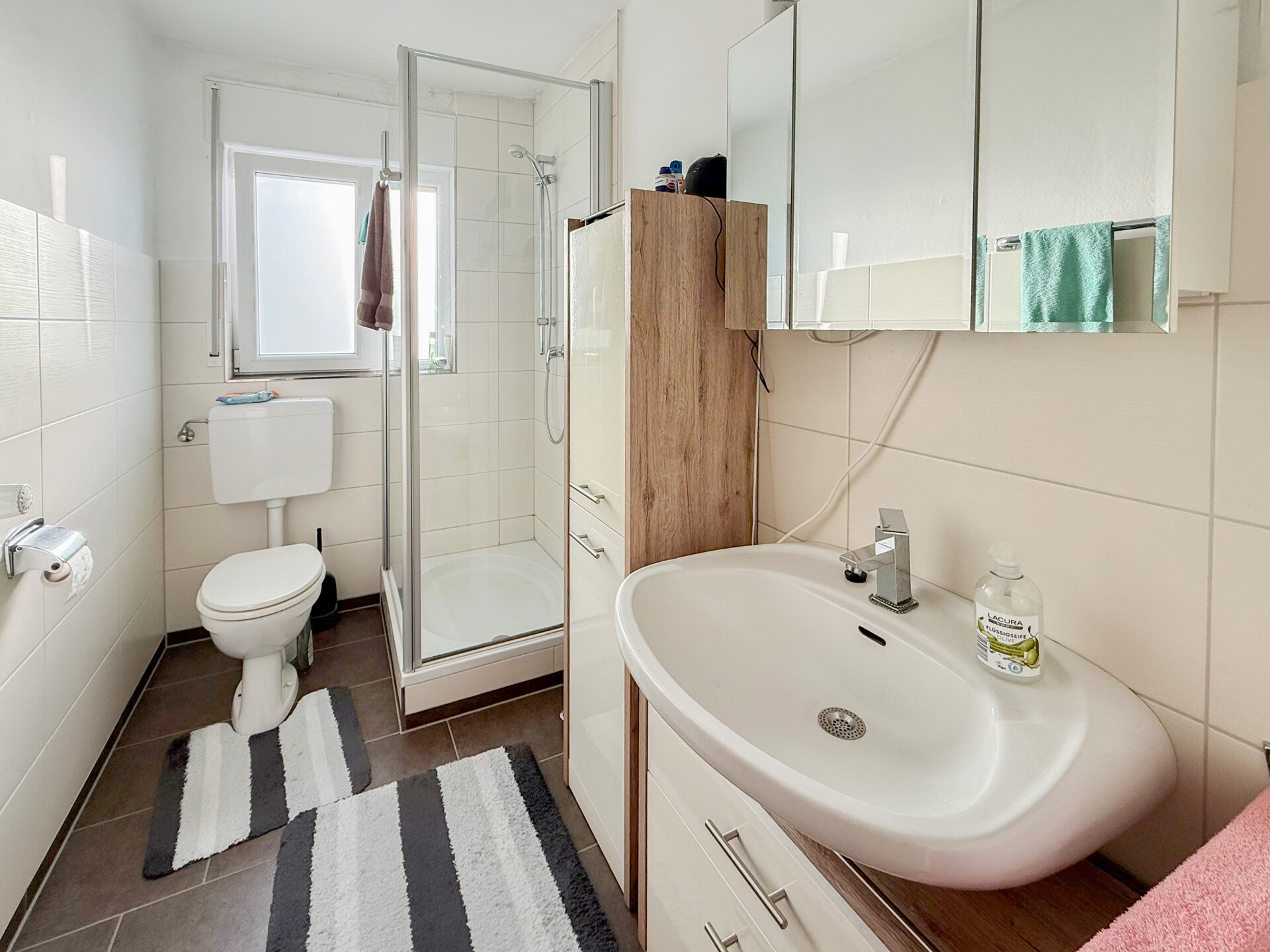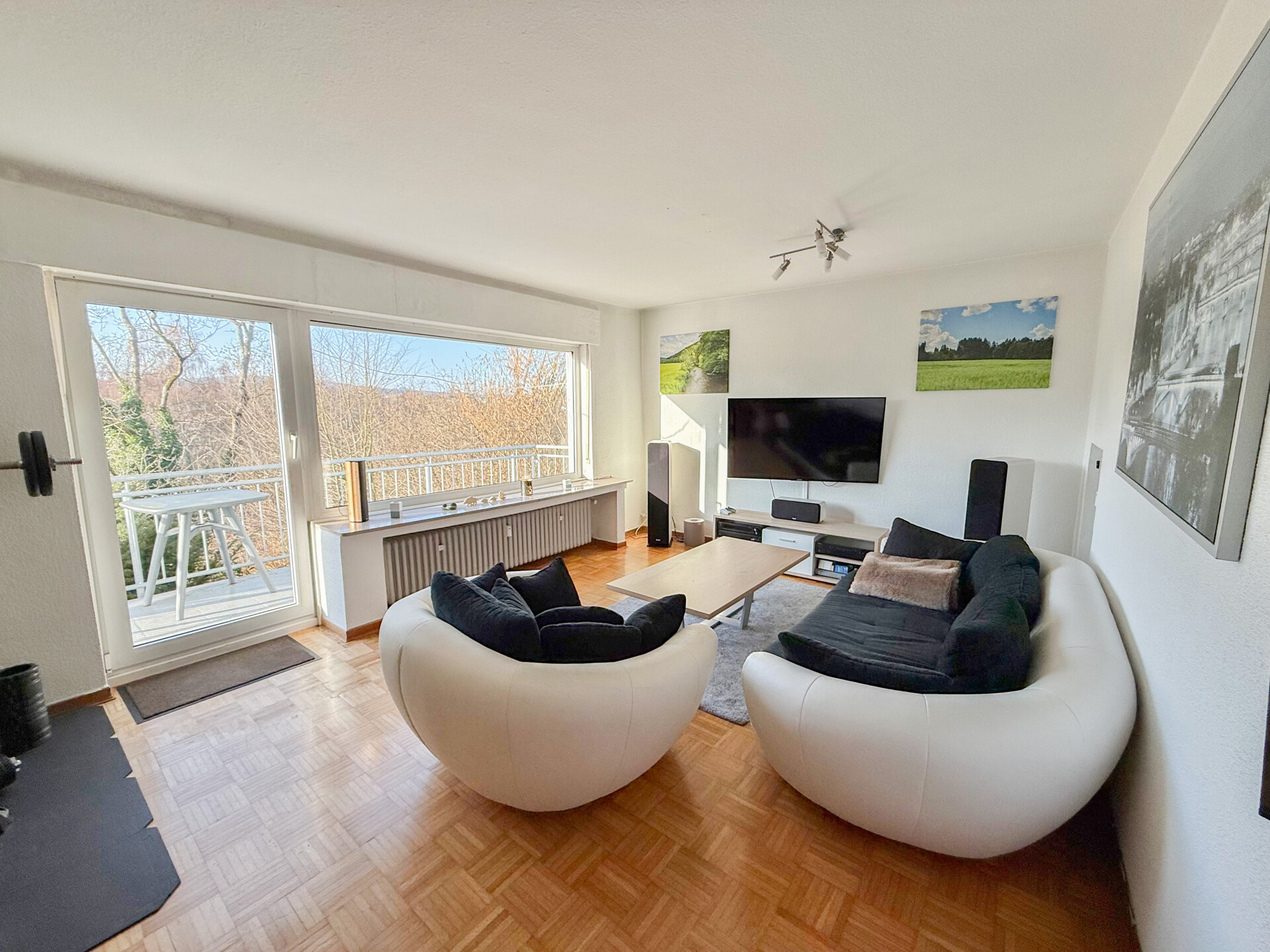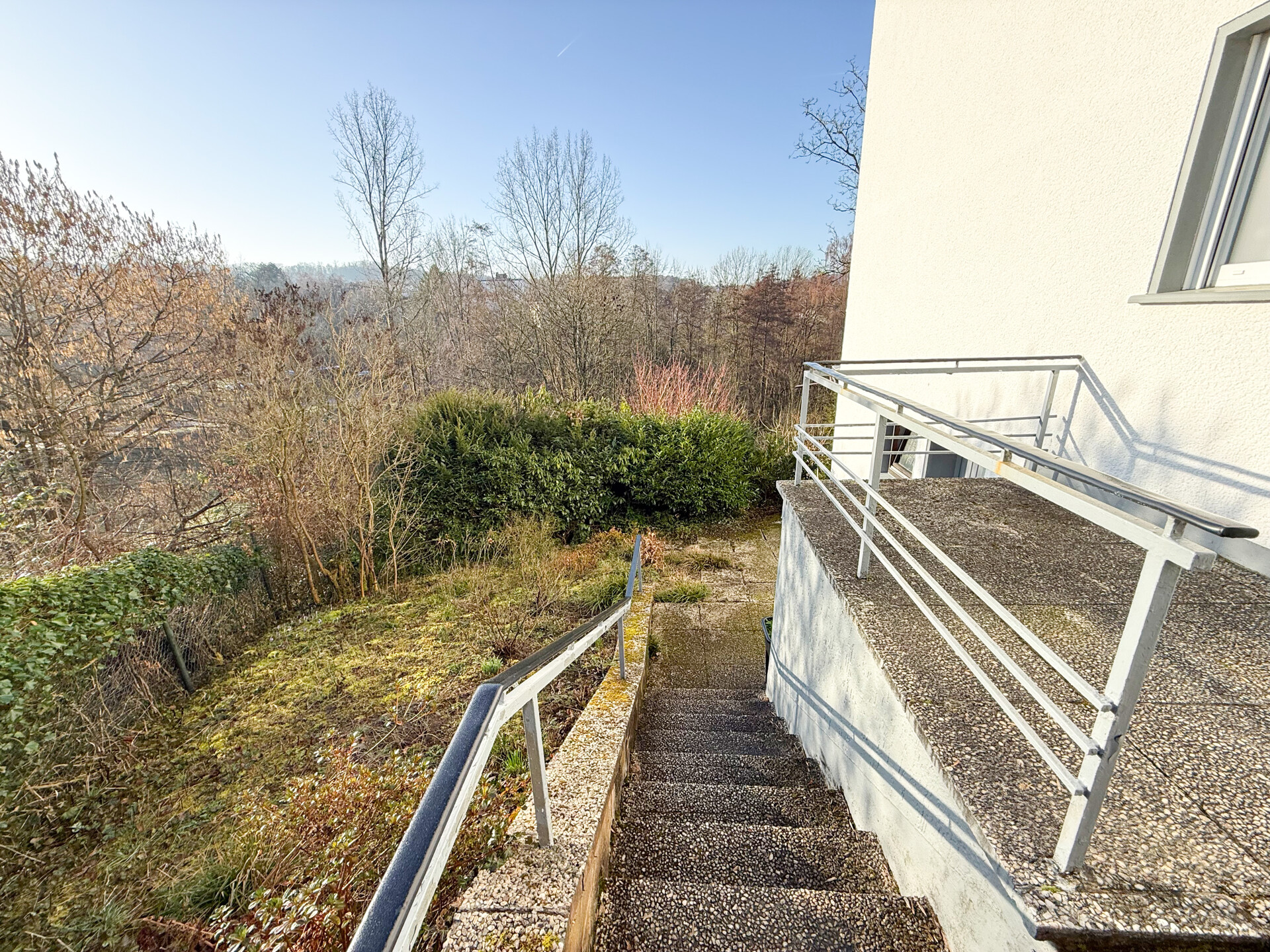Dieses Zweifamilienhaus aus ca. 1965 befindet sich auf einem großzügigen Grundstück von ca. 908 m² in Hanglage mit Gartenanteil. Als letztes Haus in der Zuwegung gelegen, bietet die Immobilie eine besonders ruhige Wohnlage. Durch die Hanglage befinden sich unterhalb des Grundstücks keine weiteren Häuser. Dadurch ergibt sich eine freie Sicht. Die Immobilie bietet zwei Wohneinheiten und eignet sich sowohl für Mehrgenrationenwohnen als auch zur Teilvermietung. Die Erdgeschosswohnung verfügt über 4ZKB (ca. 82 m²) sowie über eine zusätzliche Gästetoilette. Neben zwei Schlafzimmern steht ein weiteres Zimmer zur Nutzung als Büro oder Gästezimmer zur Verfügung. Vom Wohnzimmer aus genießen Sie den herrlichen Blick ins Grüne. Die Einbauküche wurde 2018 erneuert. Der Dachboden ist über eine ausklappbare Treppe erreichbar und bietet Zugang zur Loggia. Über das Treppenhaus gelangt man zudem ins Untergeschoss. Dort befinden sich eine weitere Wohneinheit mit 2ZKB /ca. 74 m²) sowie zusätzliche Kellerflächen. Das Wohnzimmer bietet Zugang zu einem großen Balkon. Die Einbauküche aus dem Jahr 2016 verbleibt auch hier im Objekt. Eine Garage mit manuellem Tor und ein Freiplatz befinden sich direkt vor dem Haus.