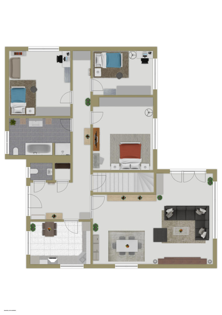 – Drei geschmackvoll gestaltete Schlafzimmer im Erdgeschoss für erholsame Nächte und