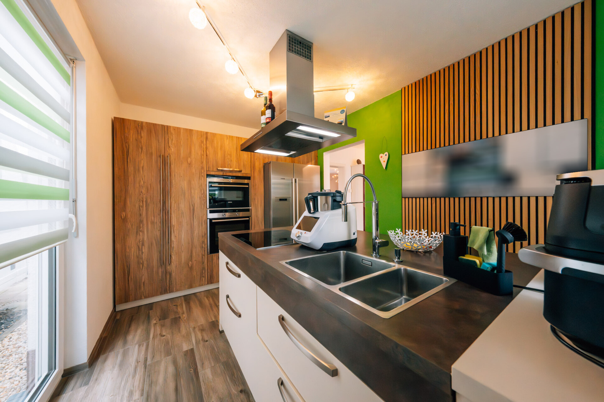 Separat gehaltene Küche – funktional gestaltet und zugleich Rückzugsort für kulinarische Kreativität