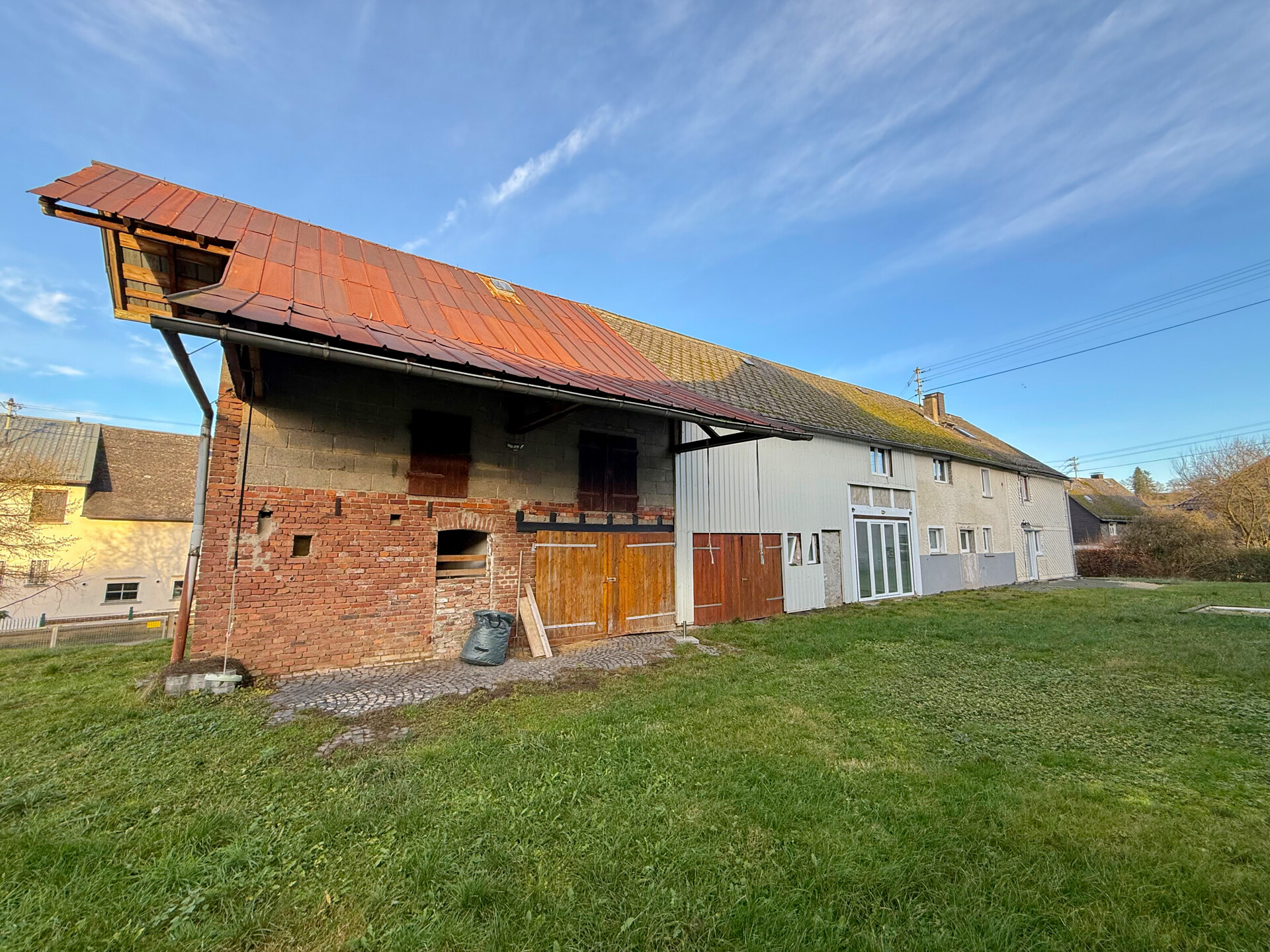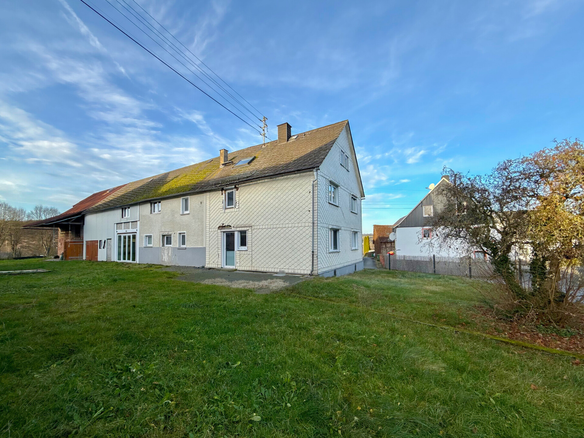 Das Wohnhaus aus ca. 1886 verbindet historischen Charme mit modernem Wohnkomfort und wurde in den letzten Jahren umfassend renoviert. Auf einem rund 909 m² großen Grundstück in ruhiger Ortsrandlage stehen ca. 266 m² Wohnfläche sowie ausreichend Nutzfläche zur Verfügung. Im Erdgeschoss empfängt Sie ein gemütliches Wohn-/Esszimmer mit Kaminofenanschluss. Die neuwertige Küche, ein stilvolles Badezimmer und ein HWR ergänzen diese Ebene. Der ehemalige Scheunenteil wurde 2014 teilweise ausgebaut und eignet sich als weiteres Wohnzimmer. Das Obergeschoss bietet 5 Schlafzimmer, eines davon mit Ankleide, sowie ein weiteres modernes Bad. Über eine Treppe gelangt man in ein offenes Atelier, nutzbar als Büro, Hobbyraum oder zusätzliches Schlafzimmer. Das Haupthaus ist teilweise unterkellert (3 Kellerräume). Im hinteren Grundstücksbereich schließt sich eine Grünfläche an. Im verbliebenen Scheunenteil befinden sich bis zu zwei PKW-Stellplätze sowie 2 Pferdeboxen [offizielle Bauvoranfrage erforderlich]. Umfangreiche Modernisierungen wie neue Fenster, teilweise erneuerte Leitungen und Anpassungen der Elektrik runden das Angebot ab.