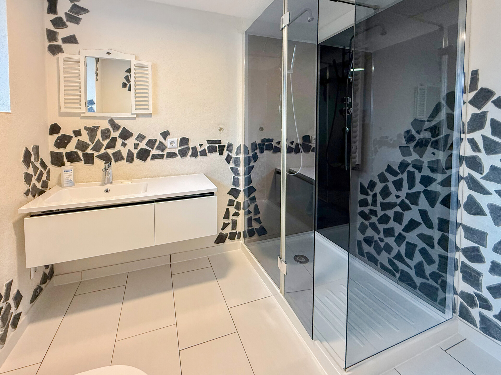 - Badausstattung: Dusche