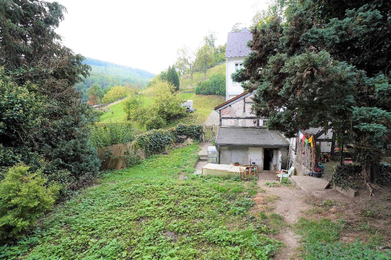 Das zweigeschossige Fachwerkhaus verfügt über ca. 80 m² Wohnfläche, aufgeteilt in Erd-/ und Obergeschoss und einen seitlichen Anbau sowie über Nutzfläche in der Teilunterkellerung und dem praktischen Spitzboden. Die Immobilie steht auf einem Höhenzug im Wesselbachtal auf einem großzügigen insgesamt ca. 2.700 m² großen Grundstück, das vollständig eingezäunt ist. Damit eröffnet es Ihnen die Freiheit, Ihre Träume von Tierhaltung, Selbstversorgung oder einfach einem naturverbundenen Leben im Grünen zu verwirklichen.