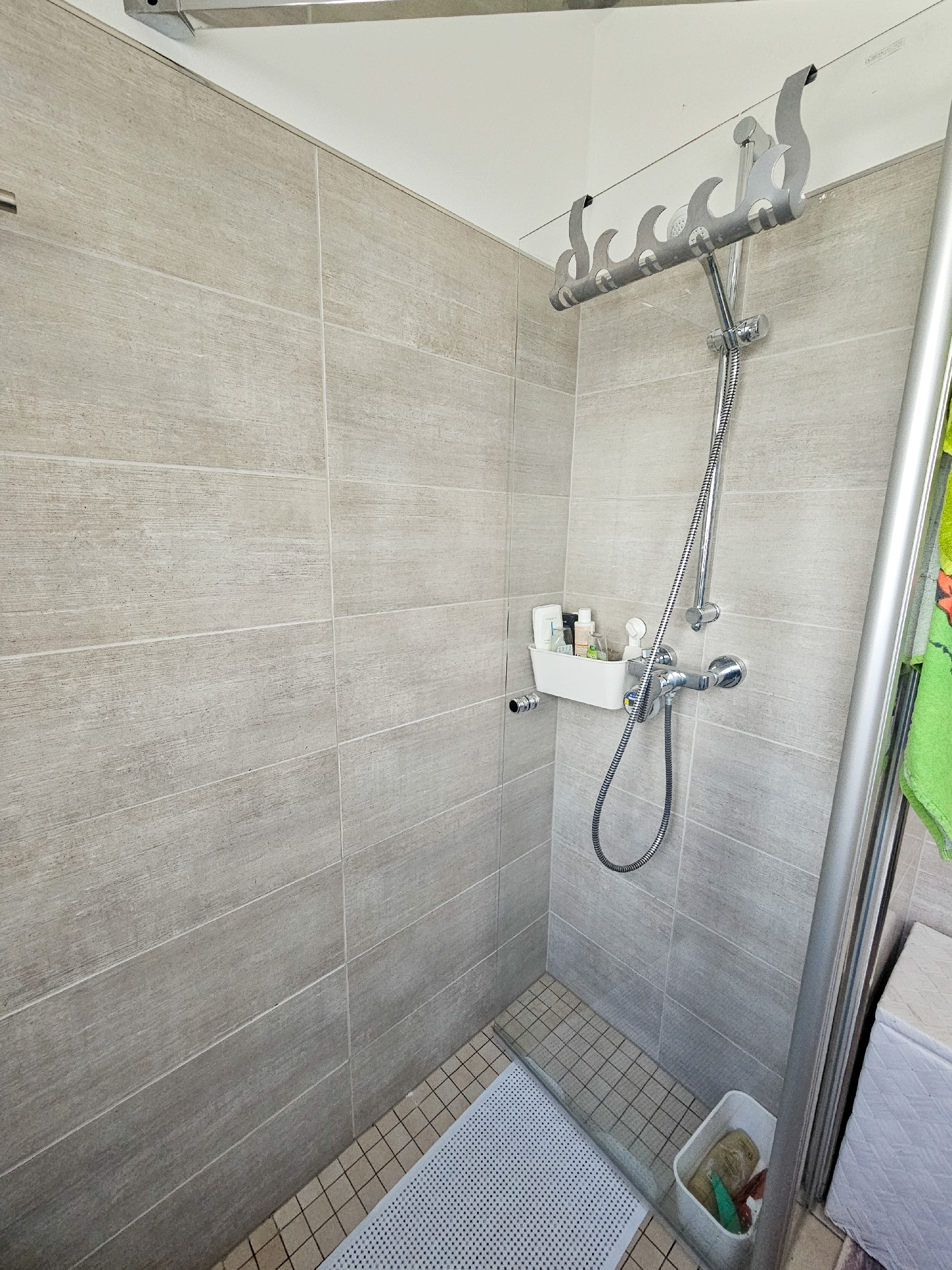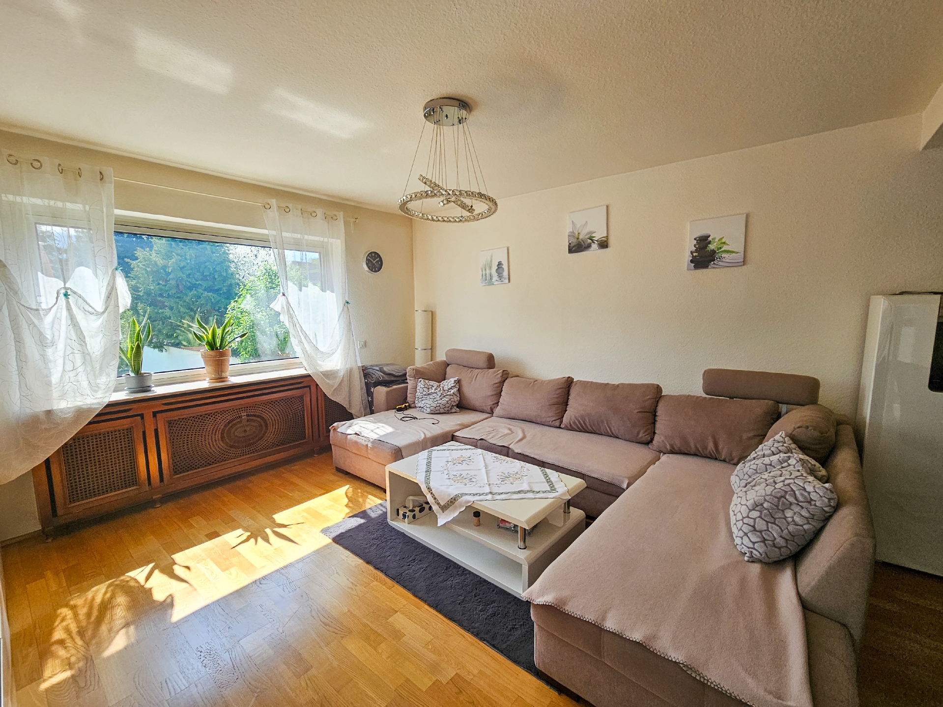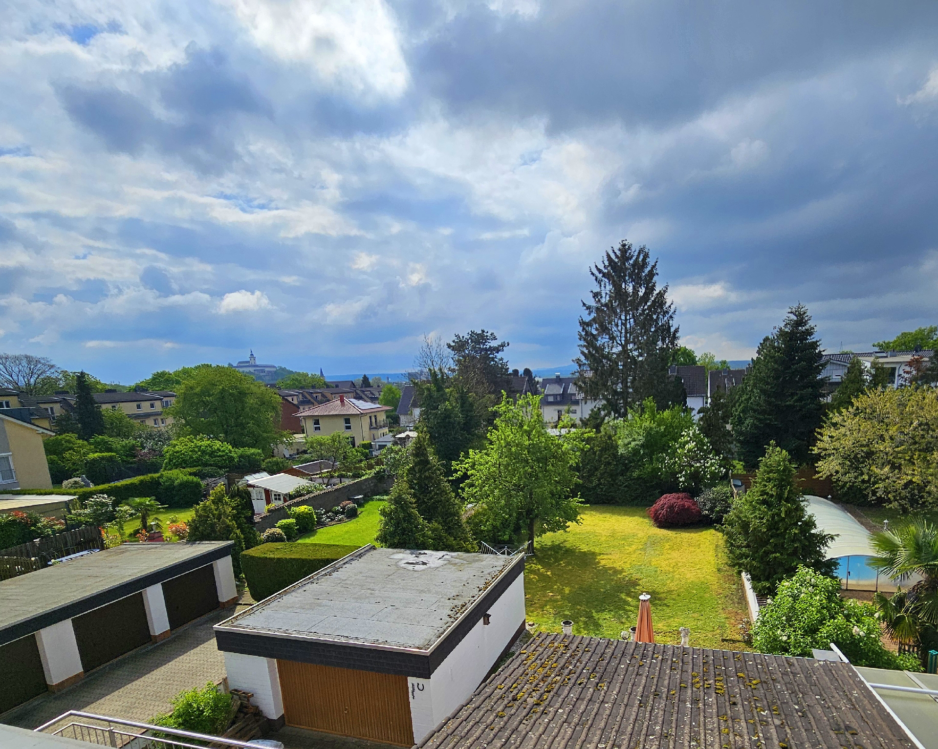 Im Obergeschoss befindet sich eine gemütliche 2-Zimmer Wohnung mit Duschbad und einem tollen, ca. 20 m² großen Balkon samt Markise und herrlichem Blick bis hin zum Michaelsberg.