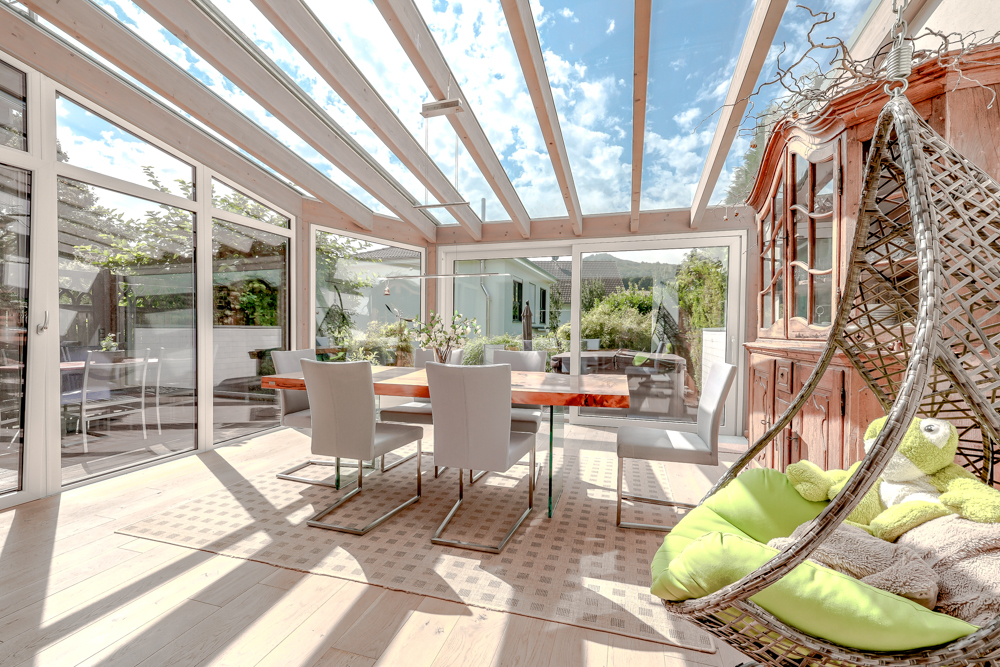 + Beheizter Wintergarten mit elektrischer Beschattung und Insektenschutz