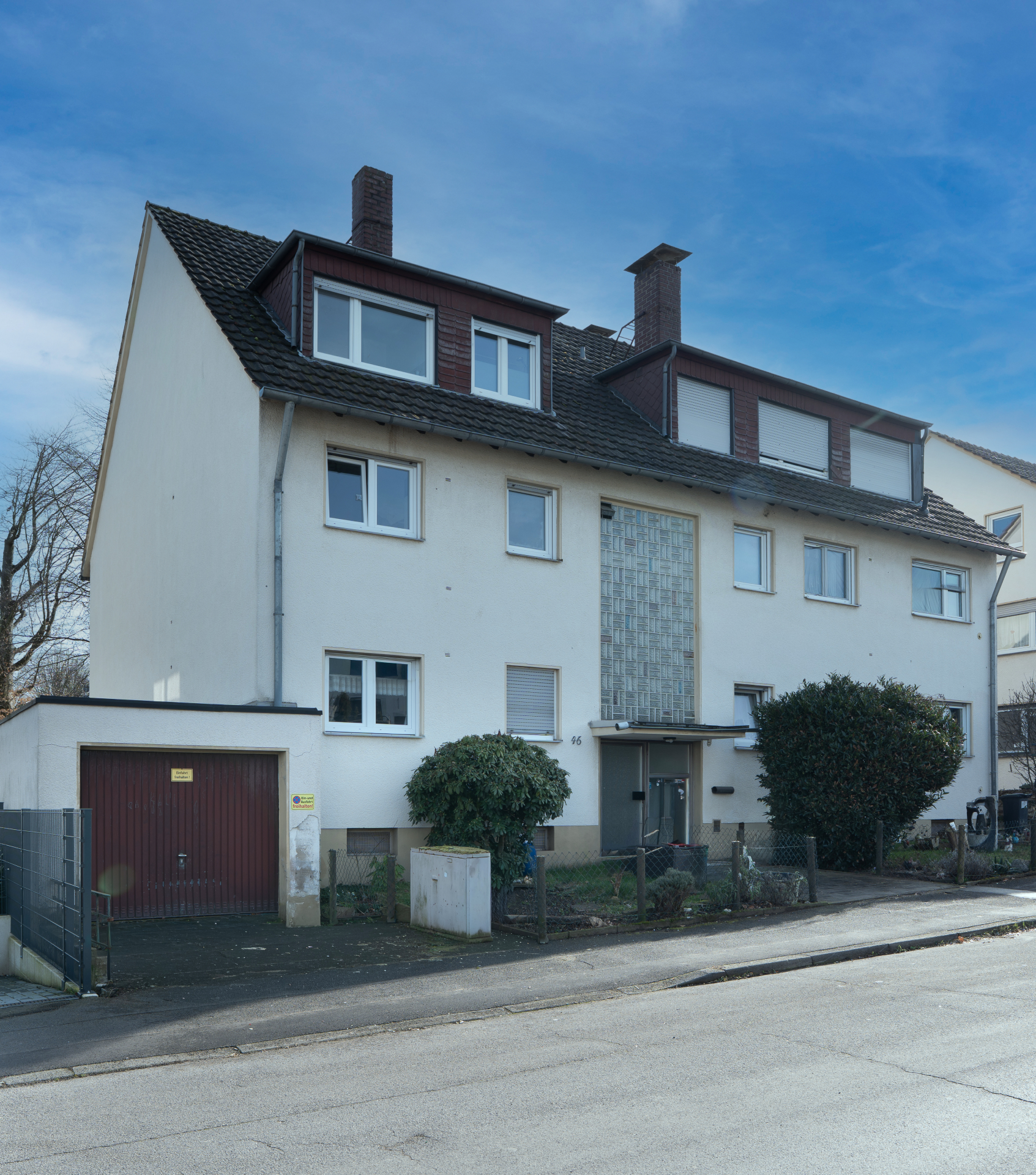 Das Haus umfasst insgesamt sechs Wohneinheiten, verteilt auf jeweils zwei Wohnungen pro Etage. Im Erdgeschoss befinden sich eine 2-Zimmer-Wohnung mit ca. 58 m² Wohnfläche und Loggia sowie eine 3-Zimmer-Wohnung mit ca. 73 m² Wohnfläche und Loggia. Das Obergeschoss ist identisch aufgeteilt und bietet ebenfalls eine 2-Zimmer-Wohnung (ca. 58 m², Loggia) sowie eine 3-Zimmer-Wohnung (ca. 73 m², Loggia). Im Dachgeschoss stehen eine 2-Zimmer-Wohnung mit ca. 52 m² sowie eine 3-Zimmer-Wohnung mit ca. 64 m² zur Verfügung. Die geringeren Flächen ergeben sich durch die vorhandenen Dachschrägen. Die 2- bzw. 3-Zimmer-Wohnungen sind jeweils gleich geschnitten, was eine einheitliche Vermietbarkeit und planbare Bewirtschaftung unterstützt.