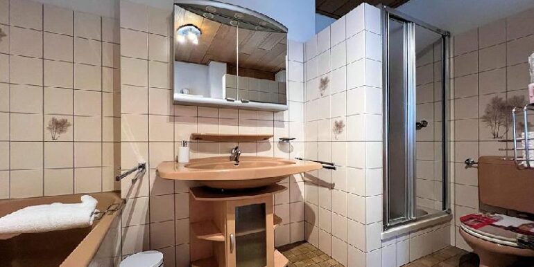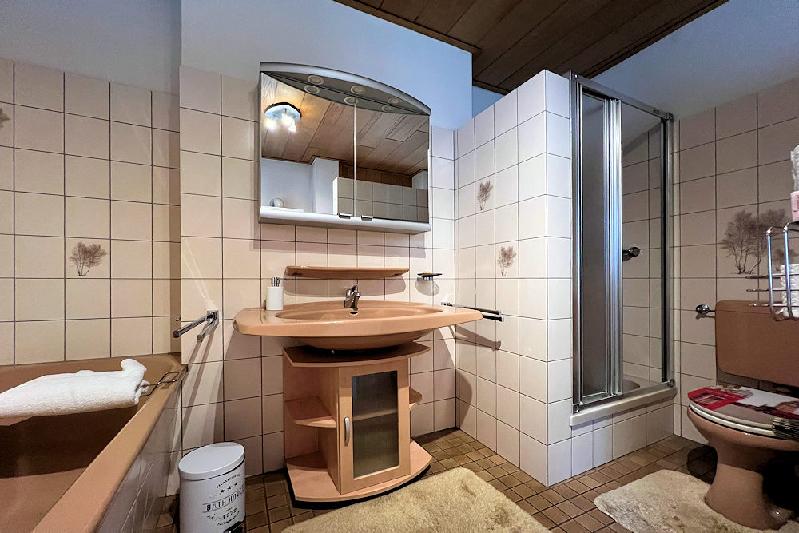 - Badausstattung: Dusche, Badewanne, Fenster im Badezimmer