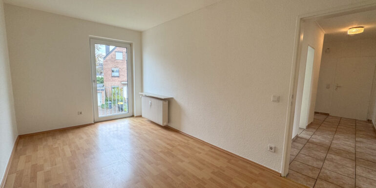Vom zentralen Flur aus sind alle Zimmer separat begehbar. Die Wohnung umfasst ein großzügiges Wohnzimmer mit Zugang zum Balkon, ein Schlafzimmer, ein Kinder- bzw. Arbeitszimmer, eine Küche mit Platz für einen Essbereich sowie ein Tageslichtbad.