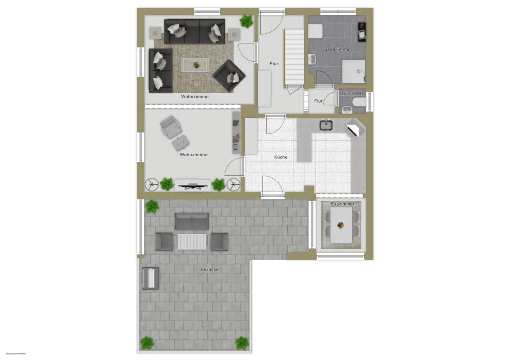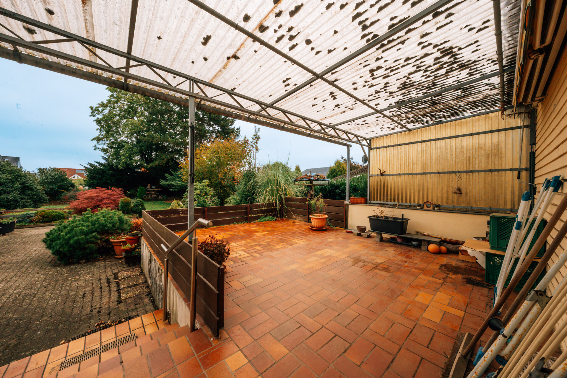 Ein besonderes Highlight ist das großzügige Grundstück von etwa 975 m², das viel Raum für Freizeitaktivitäten im Freien bietet. Die Terrasse ist der ideale Ort zum Entspannen und Genießen warmer Sommertage. Für zusätzlichen Stauraum sorgt der unterkellerte Bereich, der vielfältige Nutzungsmöglichkeiten bietet.