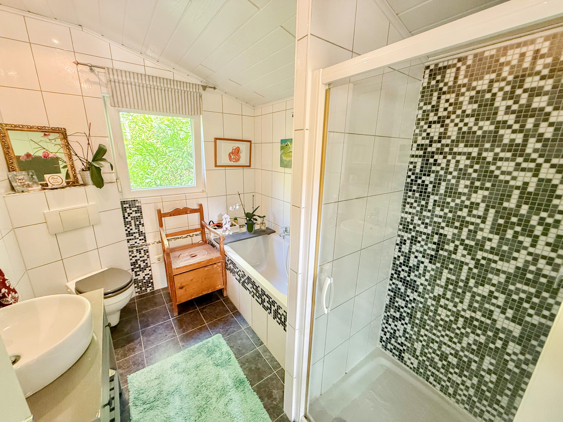 - Badausstattung: Dusche, Badewanne