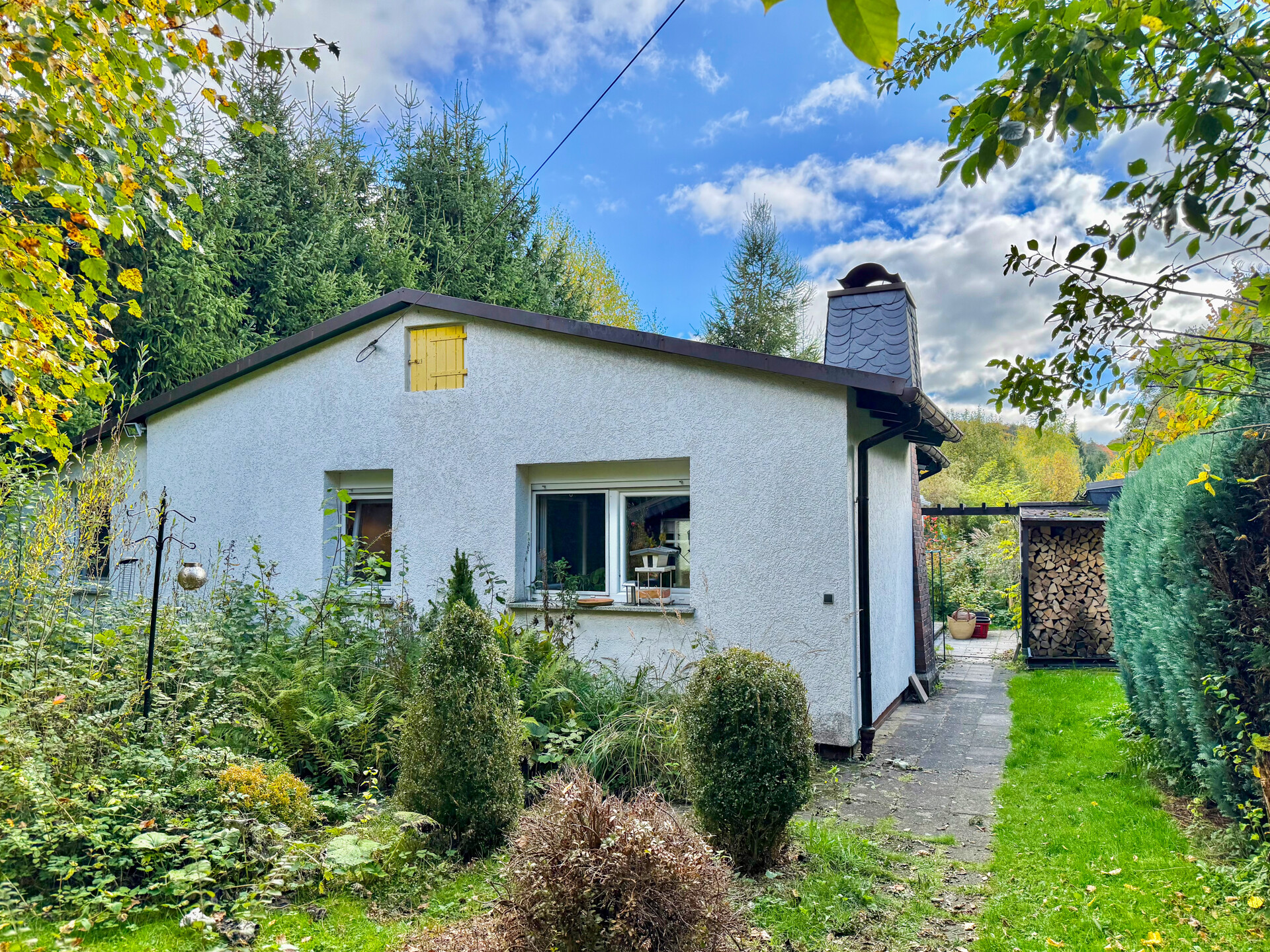 Dieses Ferienhaus aus dem Jahr 1961 befindet sich in einem ausgewiesenen Sondererholungsgebiet – eine dauerhafte Wohnnutzung ist daher nicht gestattet. Es verfügt über eine Wohnfläche von ca. 63 m², einschließlich des ca. 15 m² großen, beheizbaren Wintergartens. Die Räume teilen sich wie folgt auf: Flur mit Einbauschrank, Tageslichtbad mit Dusche und Wanne, voll ausgestattete Einbauküche (2021) sowie ein großzügiger Wohn-/Essbereich mit Zugang zum Wintergarten, Schlafzimmer. Im Außenbereich laden eine überdachte Terrasse mit Außenkamin sowie ein verträumter Garten zum Entspannen ein. Ein separater Kellerraum beherbergt Heizungsanlage, Warmwasserspeicher sowie alle Versorgungsanschlüsse. Die Liegenschaft ist an das öffentliche Strom- und Kanalsystem angeschlossen. Für Fahrzeuge stehen ein Doppelcarport und weitere Stellplätze bereit. Die ehemalige Garage wurde zur beheizten Werkstatt mit Wasseranschluss umfunktioniert. Zusätzlichen Stauraum bieten ein Holzgartenhaus und ein Geräteschuppen. Ein idealer Rückzugsort – naturnah und komfortabel! Das Feriengebiet ist an einen zentralen Stromanschluss angebunden. Viermal jährlich werden die hauseigenen Zähler abgelesen und die Nebenkosten exakt ermittelt.