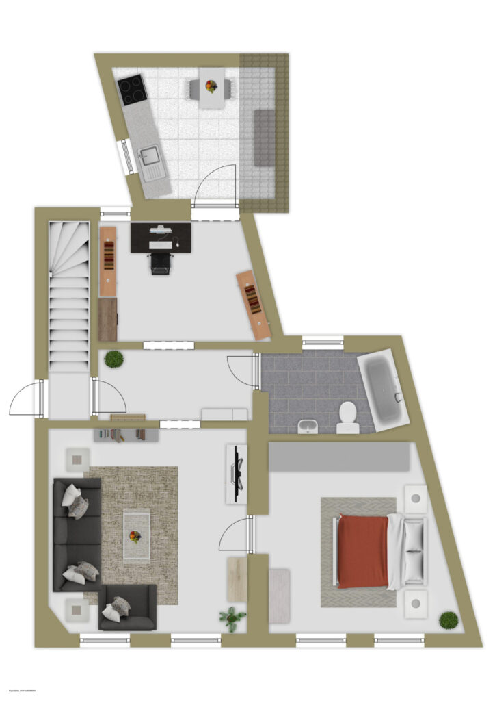 – OG rechts: ca. 43 m² – aktuell vermietet für 410 €