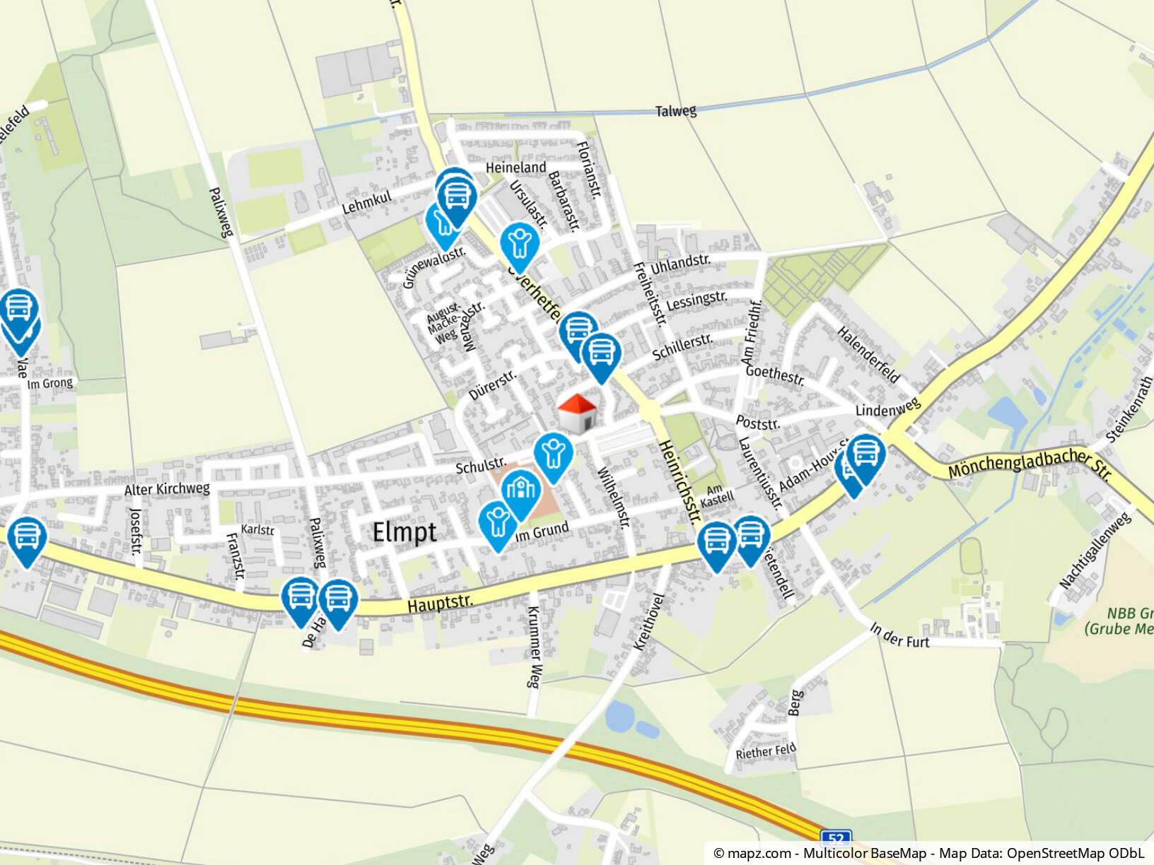 Sämtliche Einrichtungen des täglichen Bedarfs – darunter Supermärkte, Bäckereien, Apotheken und Ärzte – sind im Ortskern von Elmpt bequem erreichbar. Besonders attraktiv für Familien: Kindergärten sowie die Grundschule befinden sich in unmittelbarer Nähe und sind sicher zu Fuß erreichbar.