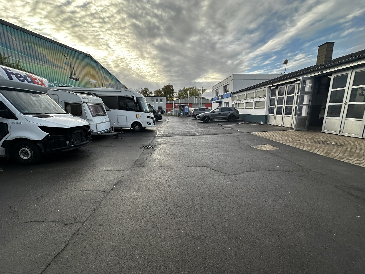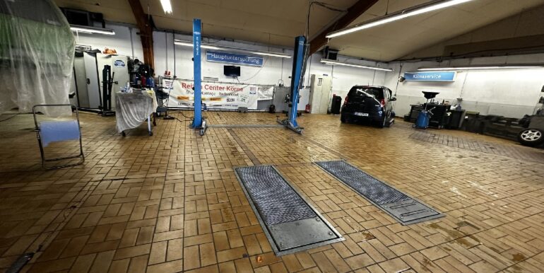 Bei dem zu veräußernden Objekt, das im Rahmen einer Insolvenzverwertung veräußert wird, handelt es sich um einen mit einem Ursprungsgebäude (Werkstatt- und Wohnnutzung) ausgestatteten Gewerbetrakt, der später um eine weitere Halle vergrößert wurde, die 2003 als Kirchengebäude genehmigt wurde, aber in ihrer aktuellen Nutzung als Werkstatt ohne Genehmigung genutzt wird. Im Außenbereich befinden sich die 26 Außenstellplätze. Vor dem Ursprungsgebäude befindet sich ein Autogastank.