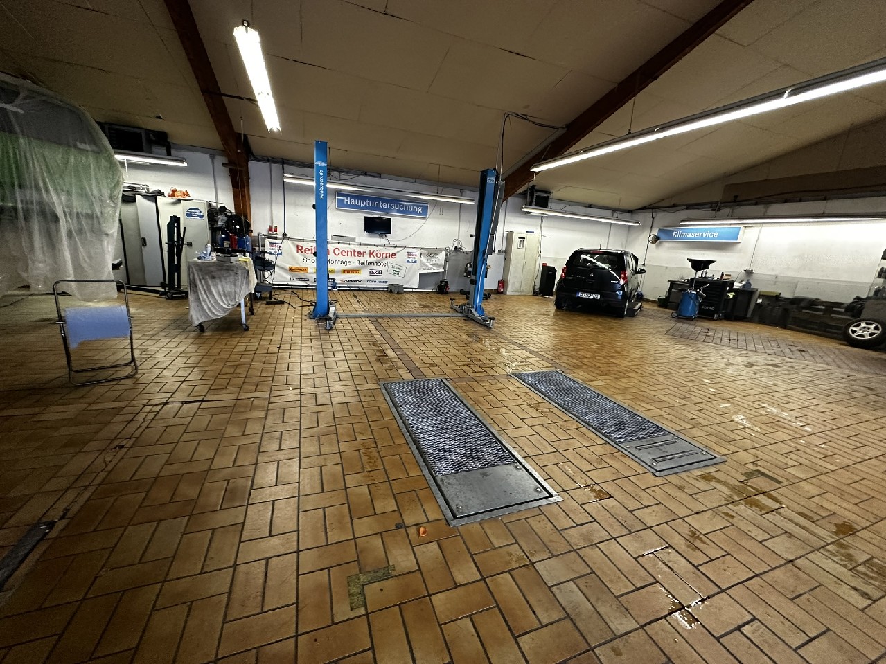 2001 erfolgte in Bezug auf die vorgenannte ursprünglich genehmigte PKW-Einstellhalle eine Nutzungsänderung zu einem Kirchengemeindehaus, der in 2003 auch entsprochen wurde mit Fertigstellungsbescheinigung im August 2003, sodass dieser Bereich aktuell mit einer Nutzung als Kirchengemeindehaus genehmigt ist. Die Nutzung ist aber eine andere, diese wird im Rahmen der im vorderen Ursprungsbereich genutzten Werkstatt als weiterer Werkstattbereich und Reifenlager genutzt. Diese Nutzung ist nicht genehmigt.