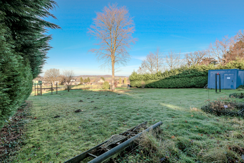 Das Obergeschoss bietet drei Schlafzimmer, von denen eines ursprünglich aus zwei Räumen bestand und bei Bedarf problemlos wieder geteilt werden kann, da der zweite Zugang vom Flur noch vorhanden ist. Ein Schlafzimmer verfügt über einen Balkon zur Wald-Seite. Durch die Fenster zur Gartenseite genießt man einen weiten Blick – bei guter Sicht ist sogar der Kölner Dom zu erkennen. Darüber hinaus befinden sich auf dieser Ebene ein Badezimmer mit Dusche und Badewanne sowie ein separates WC. Die Dachspitze ist gedämmt, die Dacheindeckung und Dämmung wurden im Jahr 2017 erneuert.