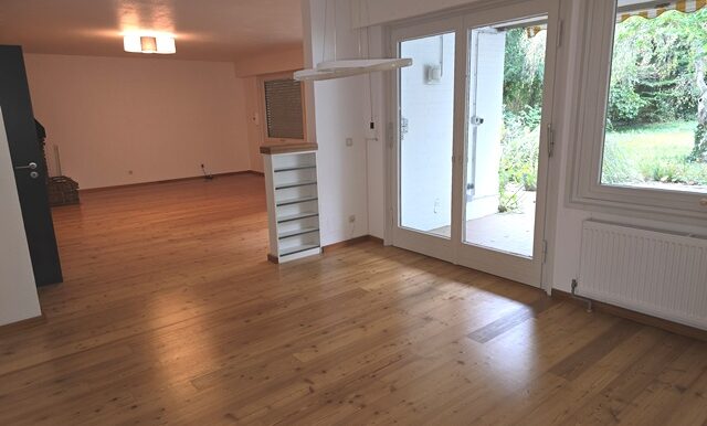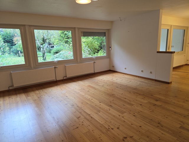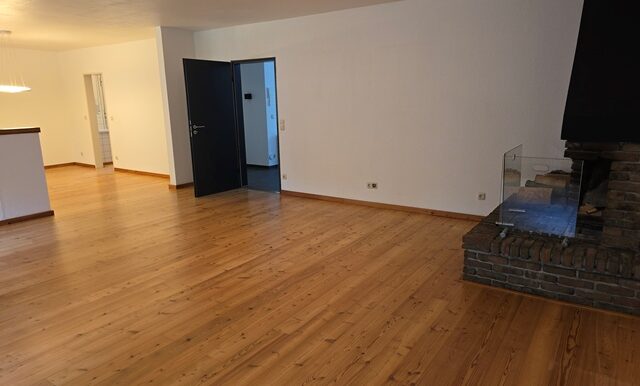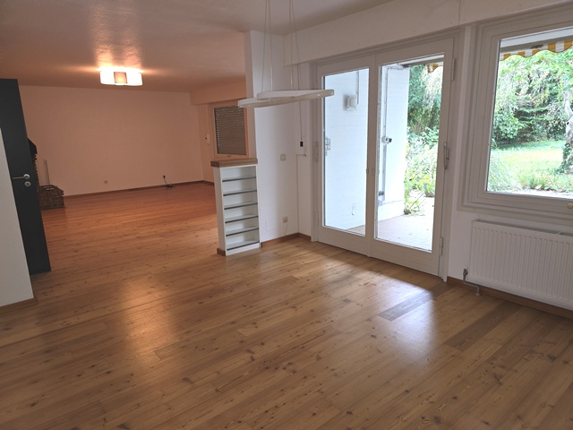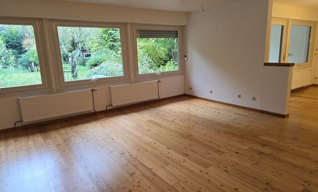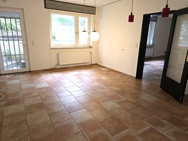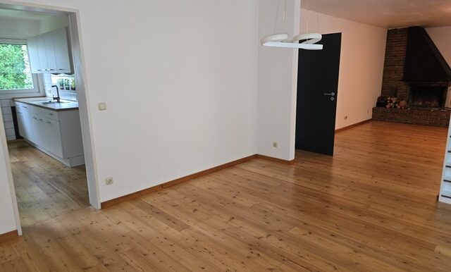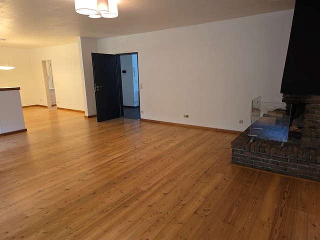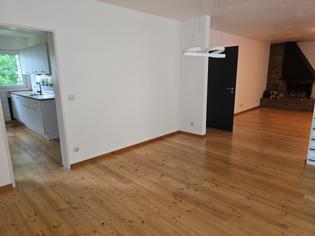 Der durchdachte Grundriss umfasst vier gut geschnittene Zimmer, darunter einen lichtdurchfluteten Wohn- und Essbereich von ca. 50 m². Große Fensterflächen schaffen eine angenehme Wohnatmosphäre und öffnen den Blick ins Grüne. Von hier aus gelangen Sie direkt auf die große, teilüberdachte Terrasse mit Markise ideal für entspannte Stunden im Freien. Der offene Kamin sorgt für wohlige Gemütlichkeit an kühleren Tagen.