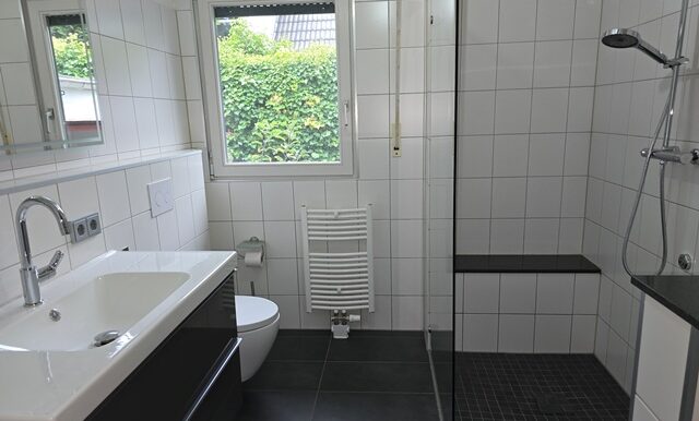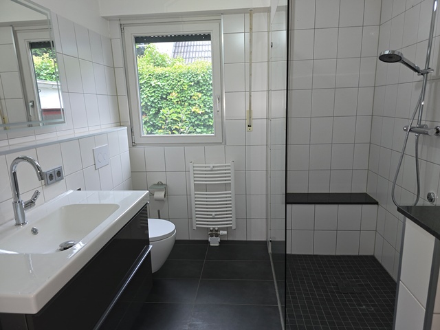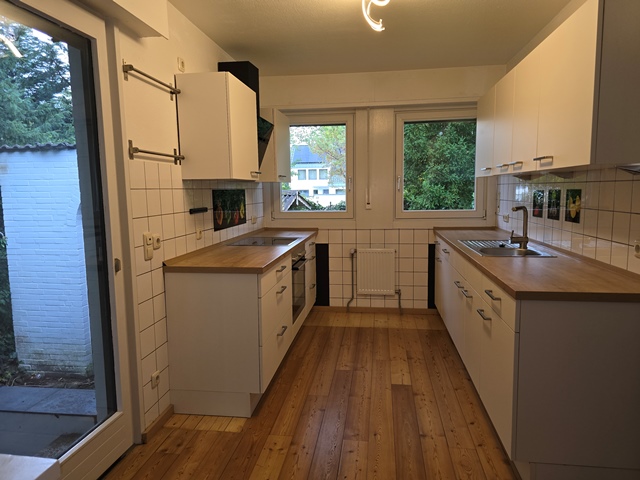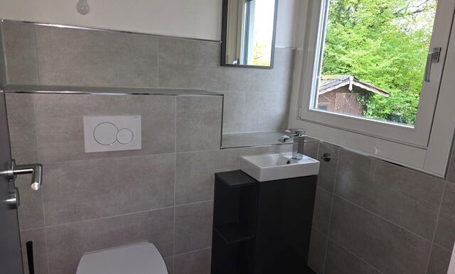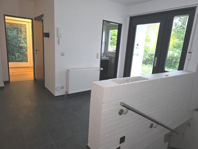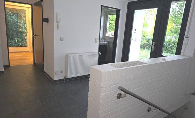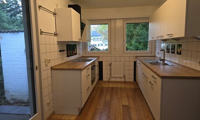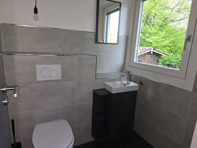 Auch die Küche verfügt über einen eigenen Zugang zum Garten und bietet damit kurze Wege für den Alltag und gesellige Abende. Ein Gäste-WC und ein praktischer Abstellraum ergänzen das Raumangebot im Erdgeschoss.