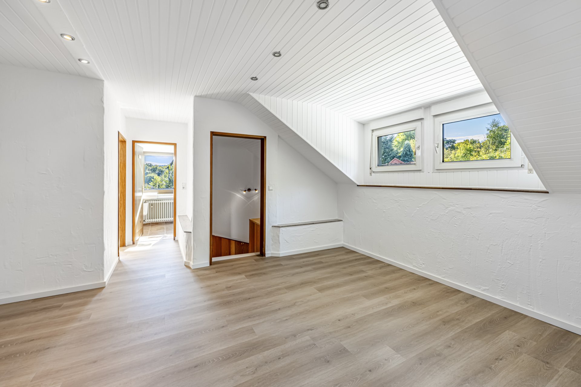 Eine neue Ölzentralheizung mit Solarthermie zur Warmwassererzeugung, ein neu gedecktes Satteldach, der Ausbau eines modernen Wannenbads in eines der Schlafzimmer sowie teilweise erneuerte Bodenbeläge und Innenwände verleihen dem Haus einen gepflegten, zeitgemäßen Charakter. Das Haus befindet sich auf einem insgesamt ca. 7.000 m großen Grundstück in überwiegend südöstlicher Hanglage. Hier im Kaufpreis enthalten ist eine noch zu vermessende Teilfläche von ca. 800 – 1.000qm als Gartengrundstück.