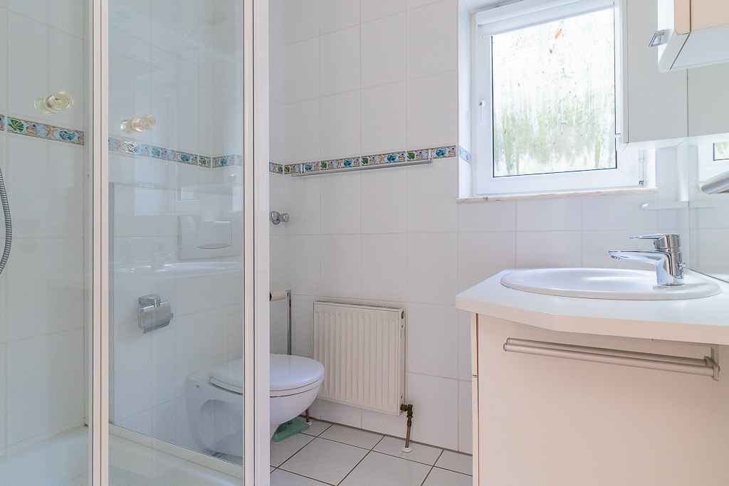 Auch das Untergeschoss hat einiges zu bieten. Zwei weitere Wohnräume eröffnen vielfältige Nutzungsmöglichkeiten. Vorhandene Küchenanschlüsse bieten die Möglichkeit, die Räume wie eine Einliegerwohnung oder auch für berufliche Zwecke zu nutzen. Ein weiteres Duschbad ergänzt das durchdachte Raumangebot. Dank der Hanglage des Hauses besteht direkter Zugang zur zweiten Terrasse und dem Garten. Ein idealer Ort zur Entspannung an sonnigen Tagen. Einbauschränke bieten reichlich Stauraum, während zwei zusätzliche Kellerräume das vielfältige Angebot abrunden. Durch seine besondere Lage bietet das Grundstück und der gut durchdachte Garten Ihnen viel Privatsphäre und mit insgesamt zwei Terrassen genug Platz für die gesamte Familie.
